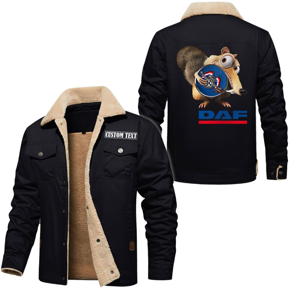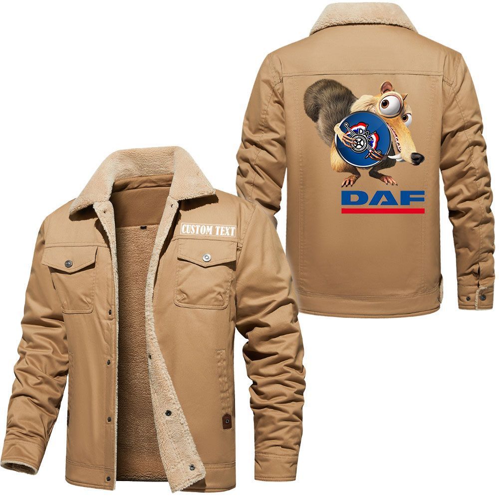 Daf Logo Custom Name Cargo Fleece Lined Cotton Jacket Scrat Ice Age Design Personalized Outerwear