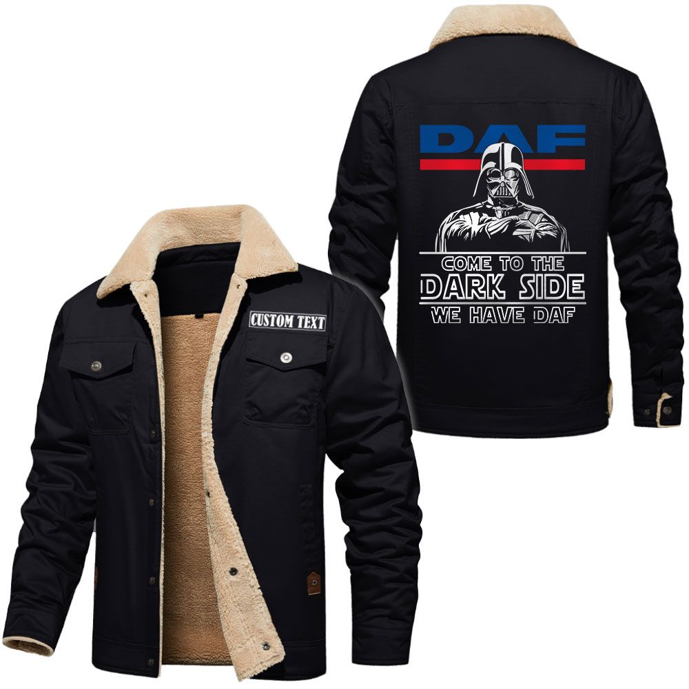 Daf Logo Custom Name Cargo Fleece Lined Cotton Jacket Personalized Outerwear with Dark Side Star Wars Design
