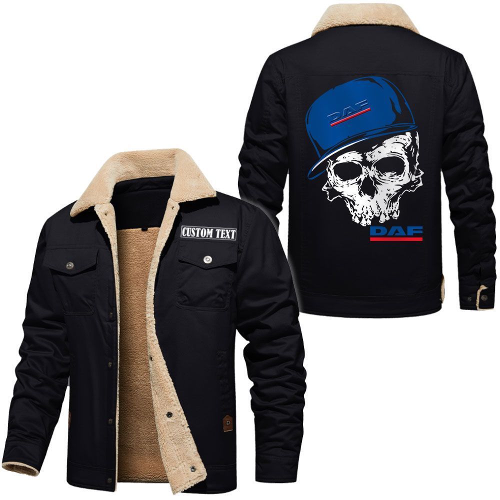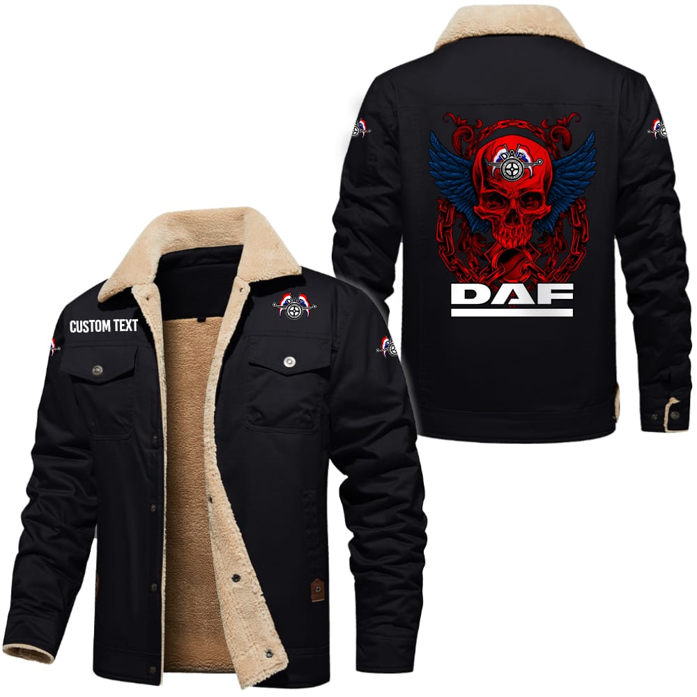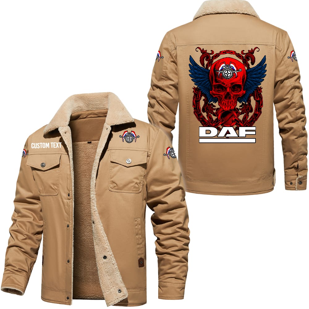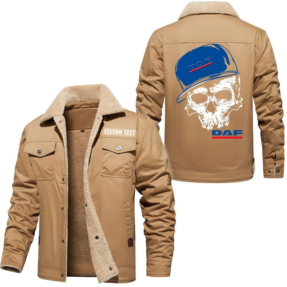 Daf Logo Custom Name Cargo Fleece Lined Cotton Jacket Personalized Outerwear with Skull Design