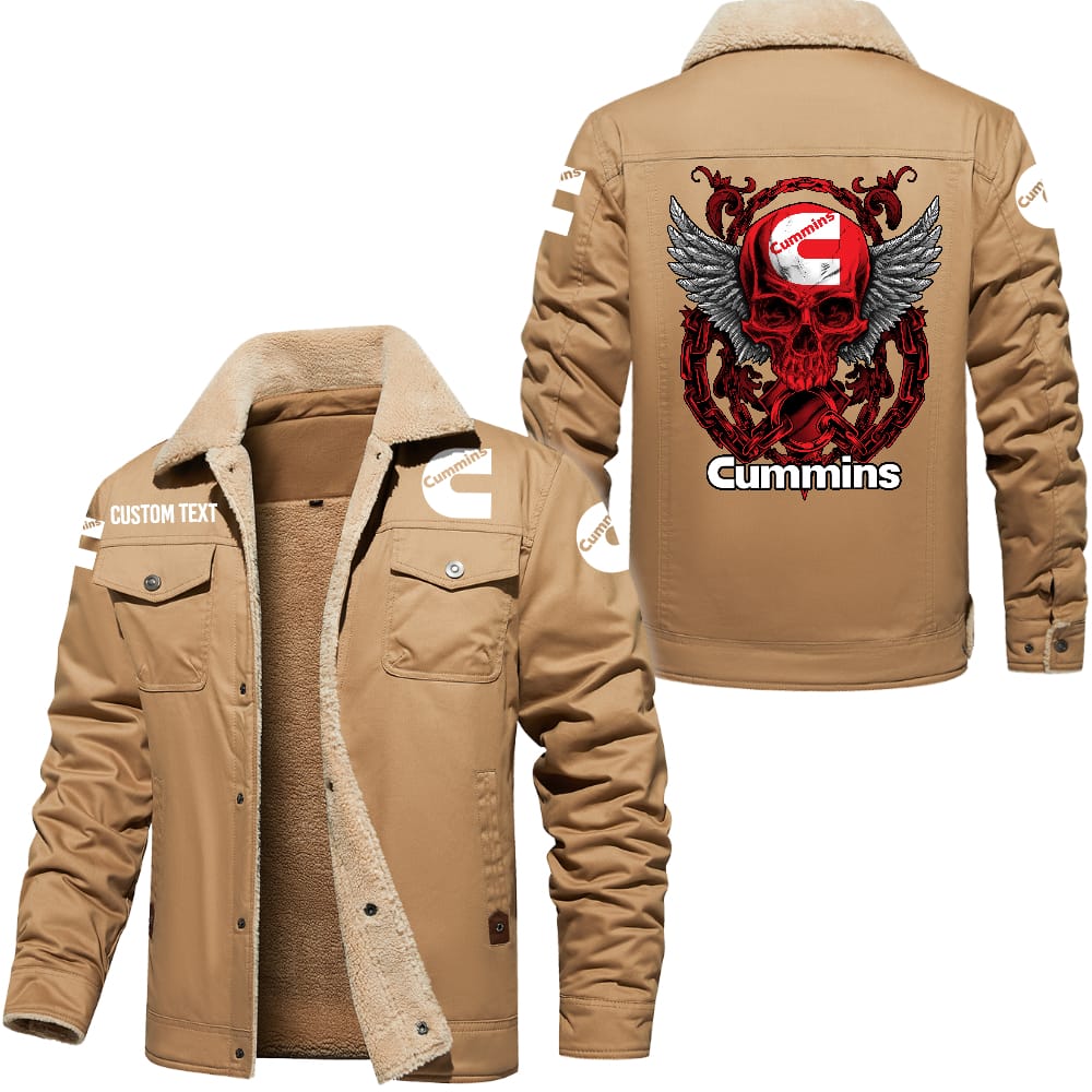 Cummins Skull Art Print Custom Name Cargo Fleece Lined Cotton Jacket