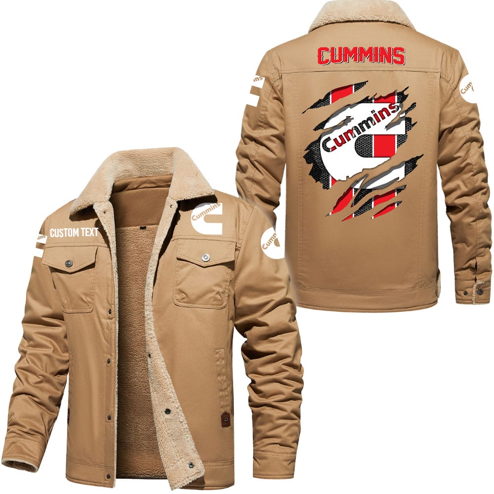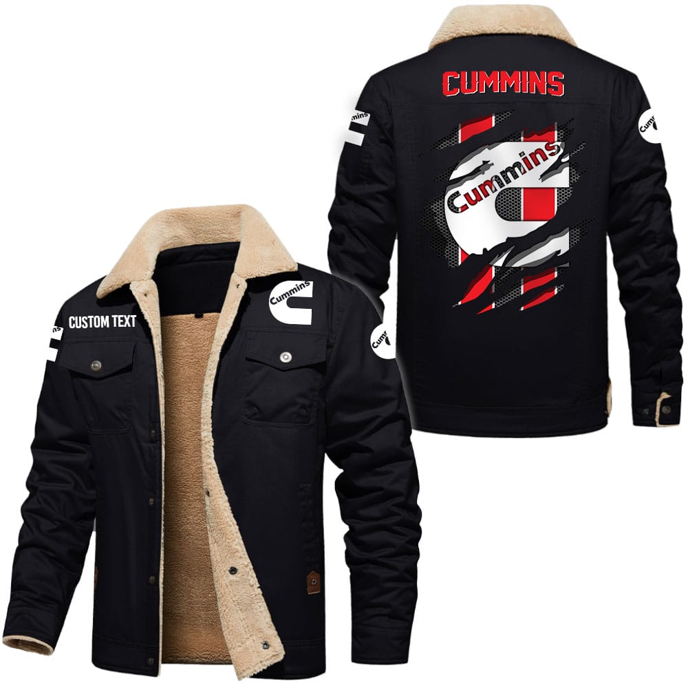 Cummins Logo Custom Name Cargo Fleece Lined Cotton Jacket