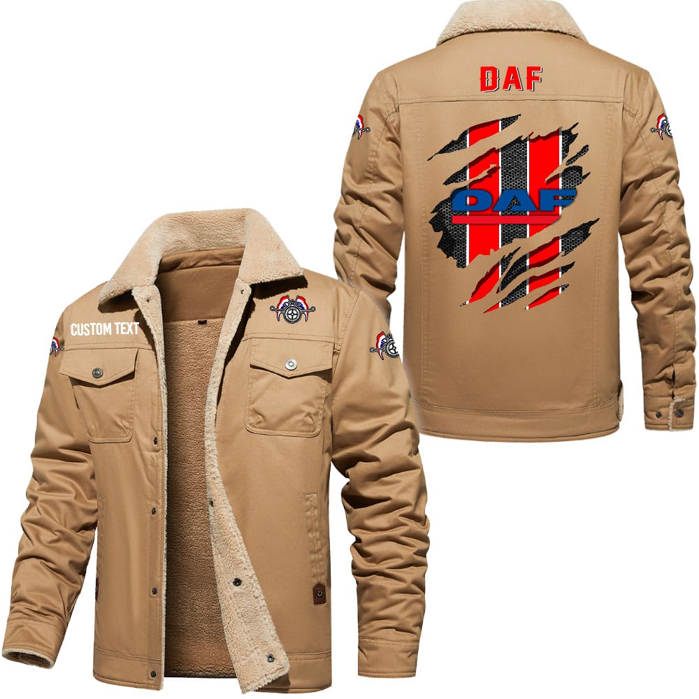 Daf Logo Custom Name Cargo Fleece Lined Cotton Jacket