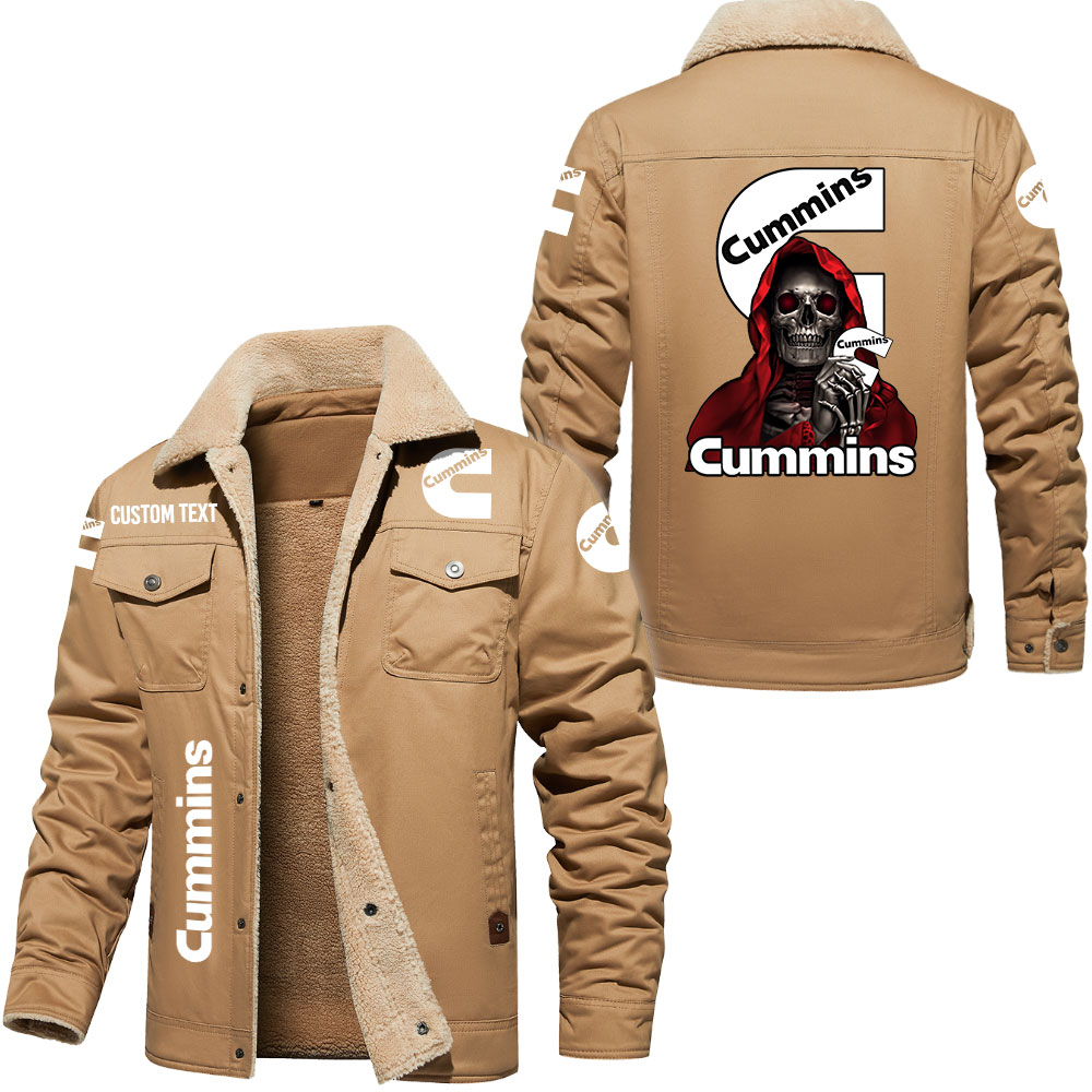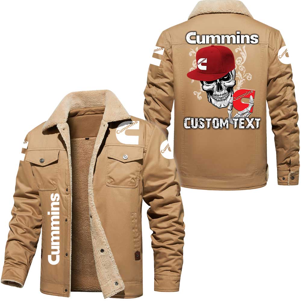 Cummins Skull Custom Name Cargo Fleece Lined Cotton Jacket