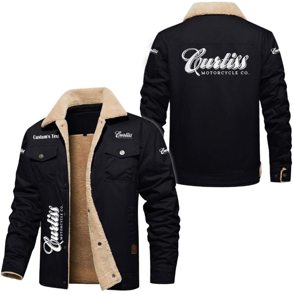 Curtiss Motorcycles Logo Custom Text Cargo Fleece Lined Cotton Jacket