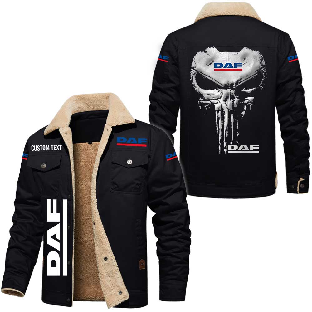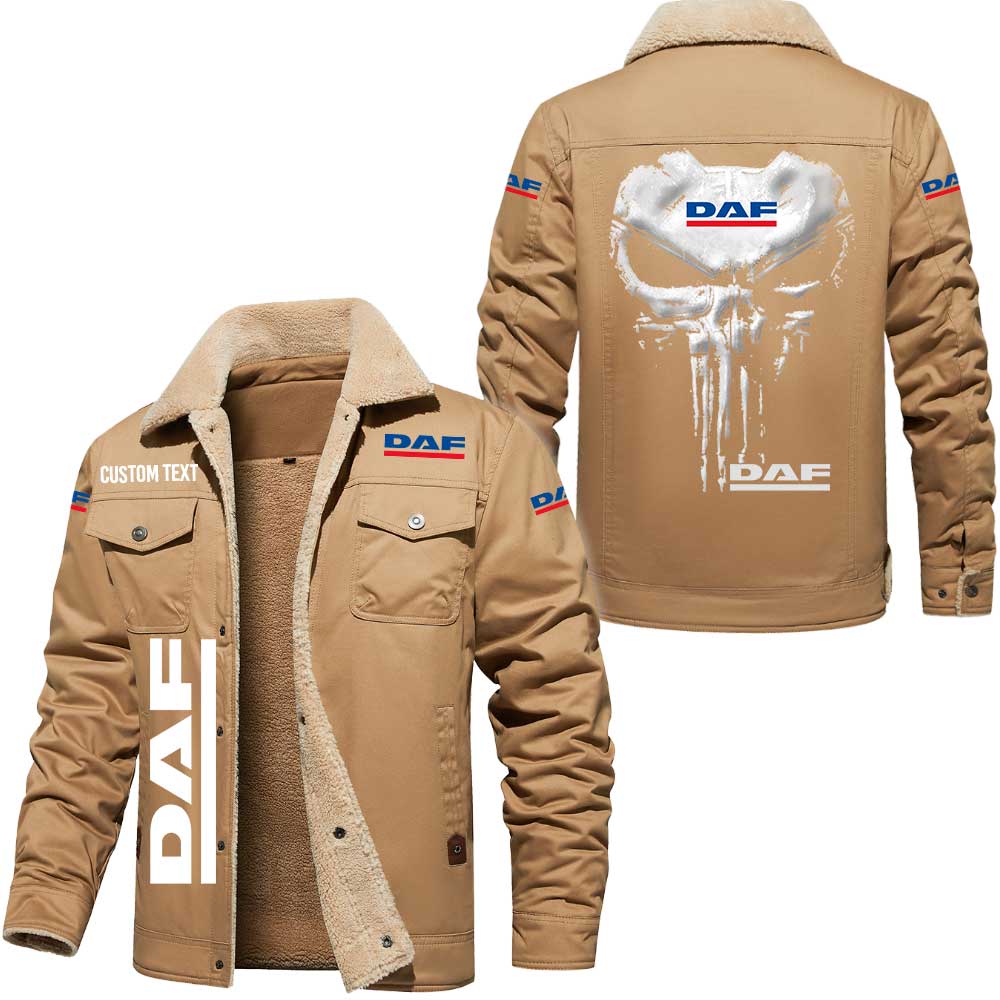 Daf Logo Skull Design Custom Text Cargo Fleece Lined Cotton Jacket