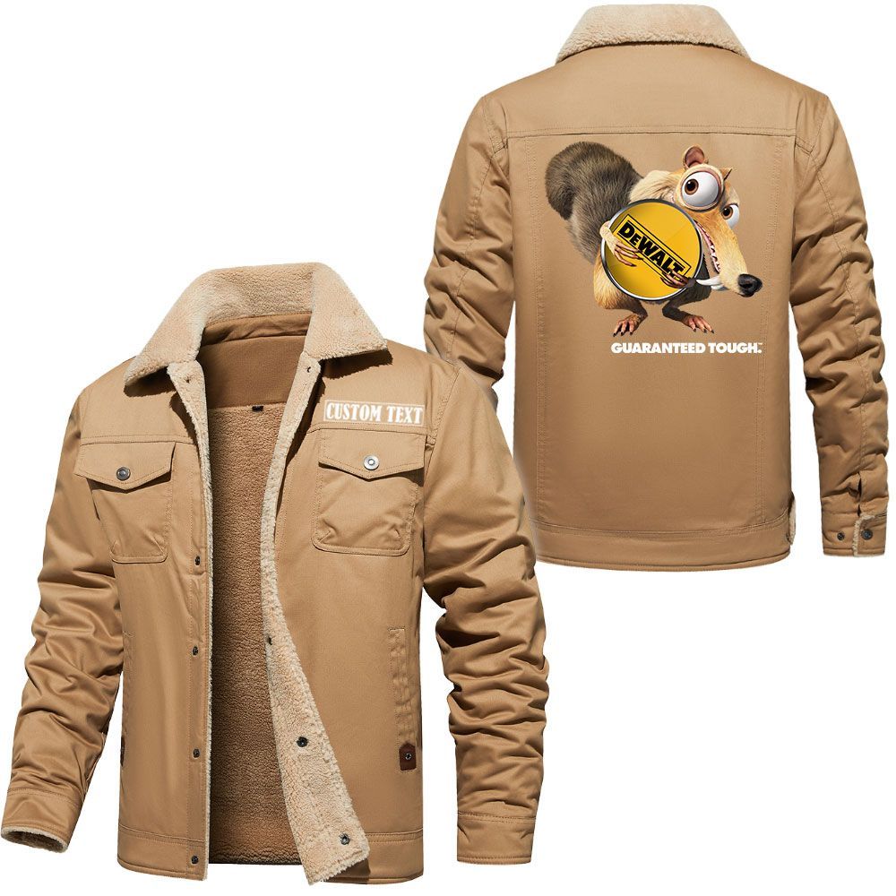 DeWalt Logo Custom Name Cargo Fleece Lined Cotton Jacket Scrat Ice Age Design Personalized Outerwear