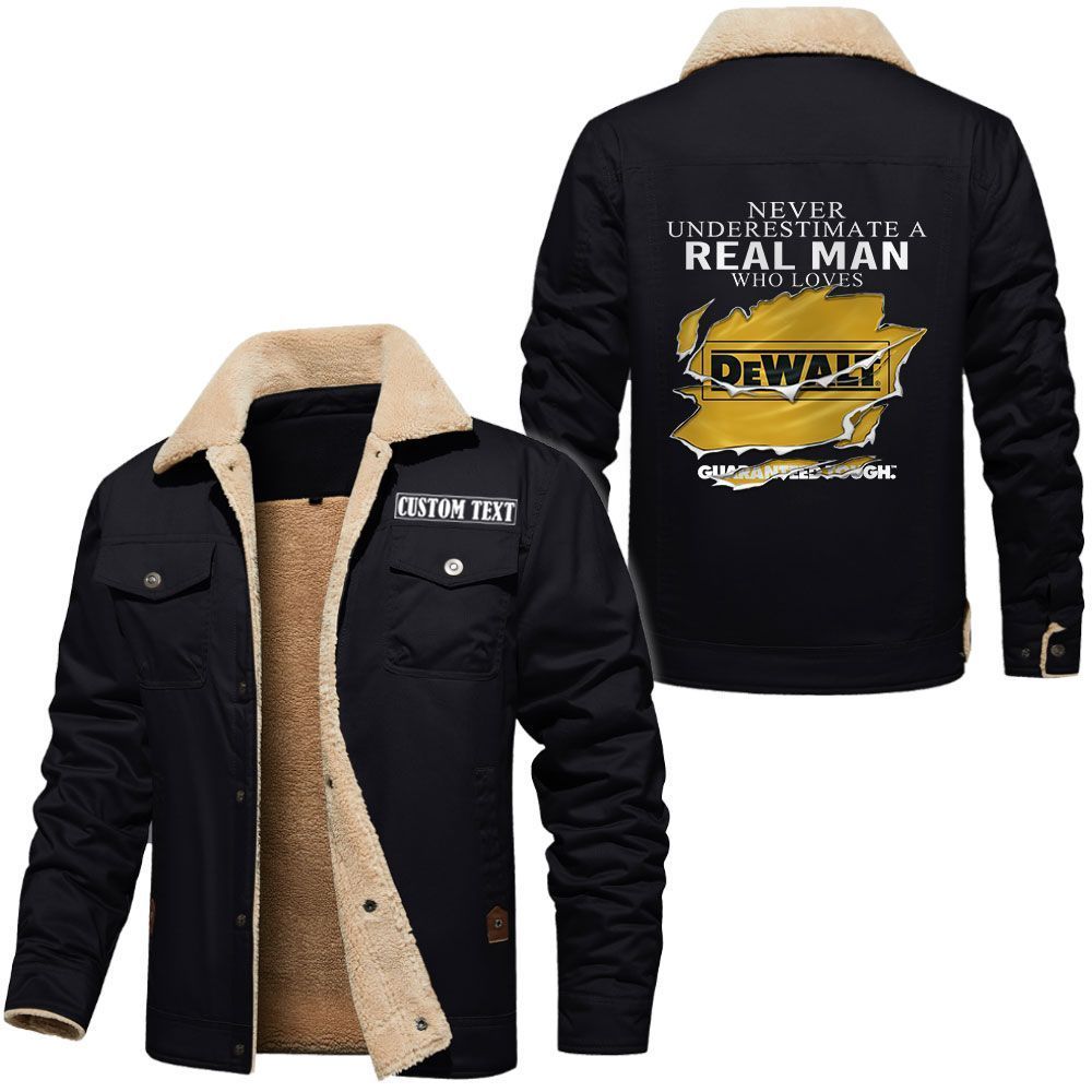 DeWalt Logo Custom Name Cargo Fleece Lined Cotton Jacket A Real Man Who Loves Personalized Outerwear