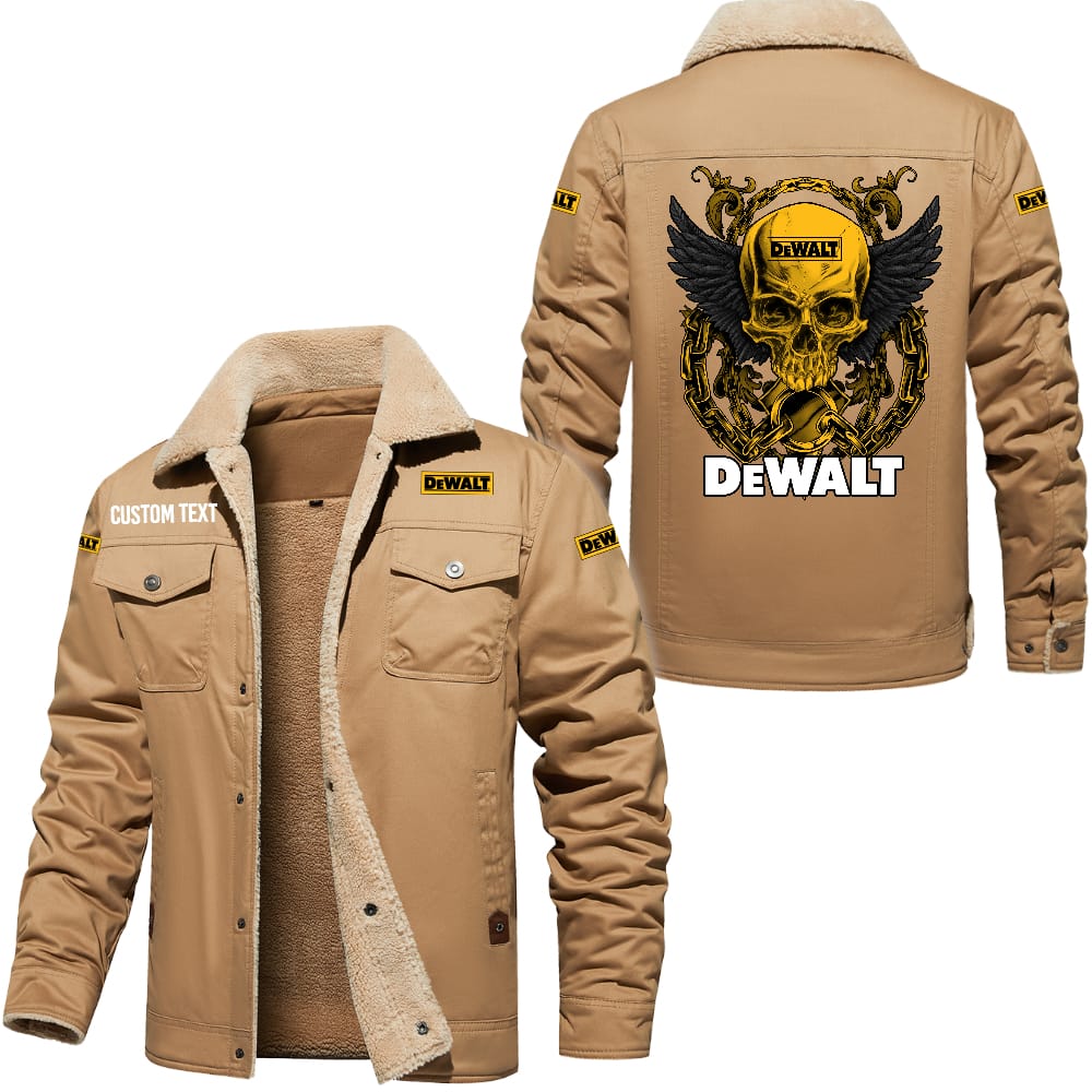 DeWalt Logo Custom Name Cargo Fleece Lined Cotton Jacket Personalized Outerwear with Skull Design