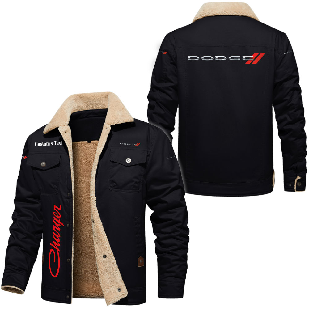 Dodge Charger Logo Custom Text Cargo Fleece Lined Cotton Jacket