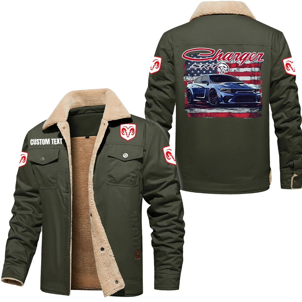Dodge Charger SRT Hellcat Custom Cargo Fleece Lined Cotton Jacket Army Green