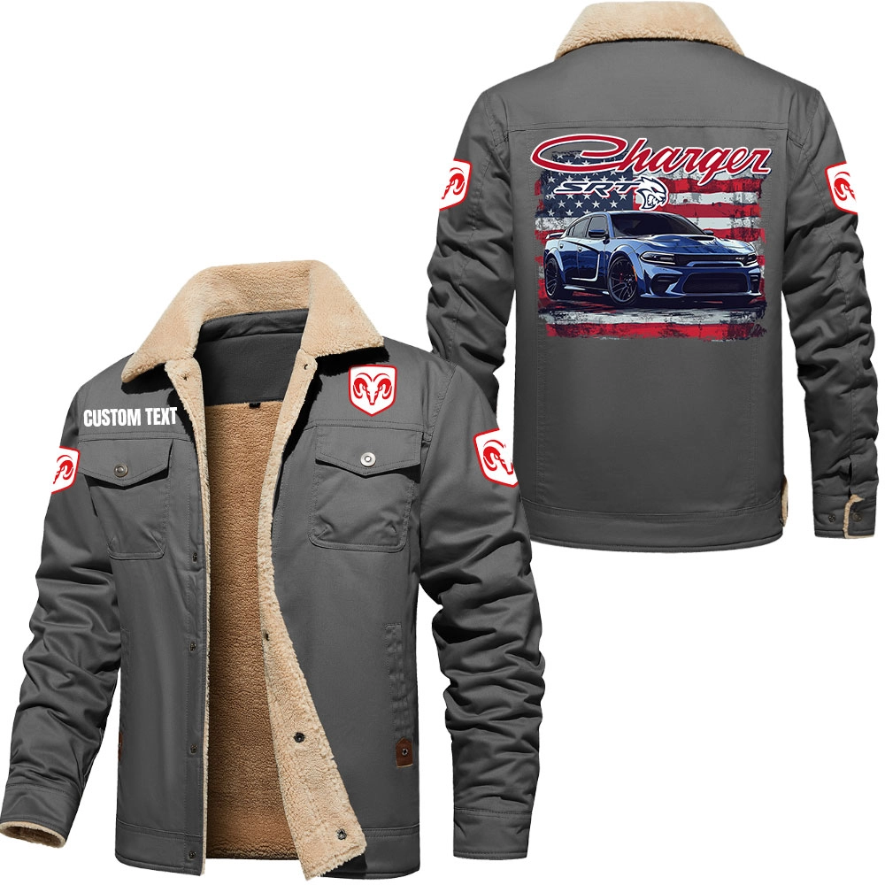 Dodge Charger SRT Hellcat Custom Cargo Fleece Lined Cotton Jacket Dark Grey