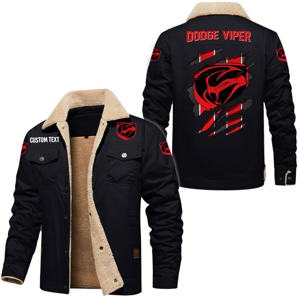Dodge Viper Logo Custom Name Cargo Fleece Lined Cotton Jacket