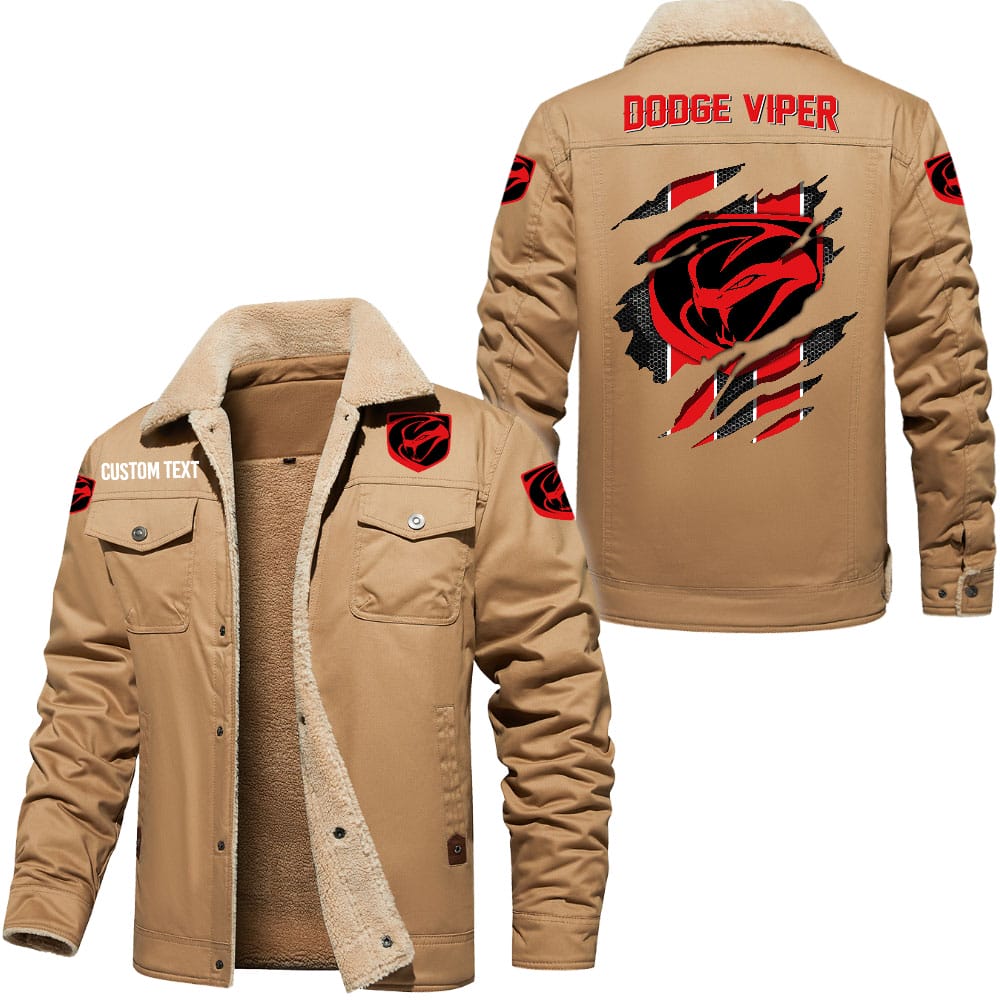 Dodge Viper Logo Skull Design Custom Text Cargo Fleece Lined Cotton Jacket