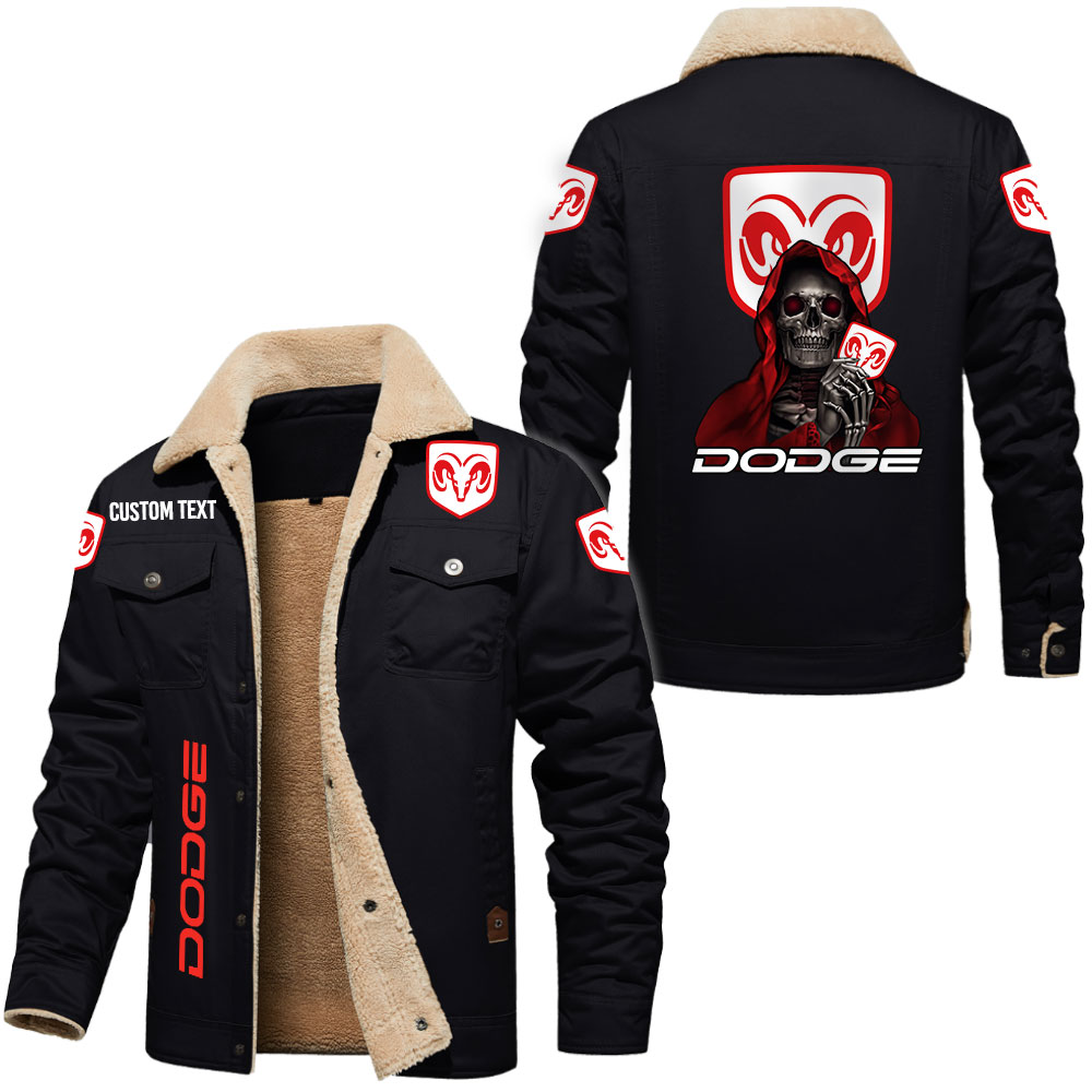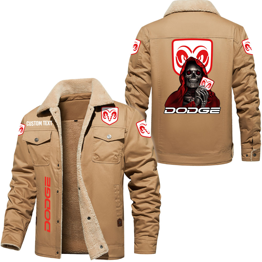 Dodge Logo Custom Name Cargo Fleece Lined Cotton Jacket Personalized Outerwear with Skull Design