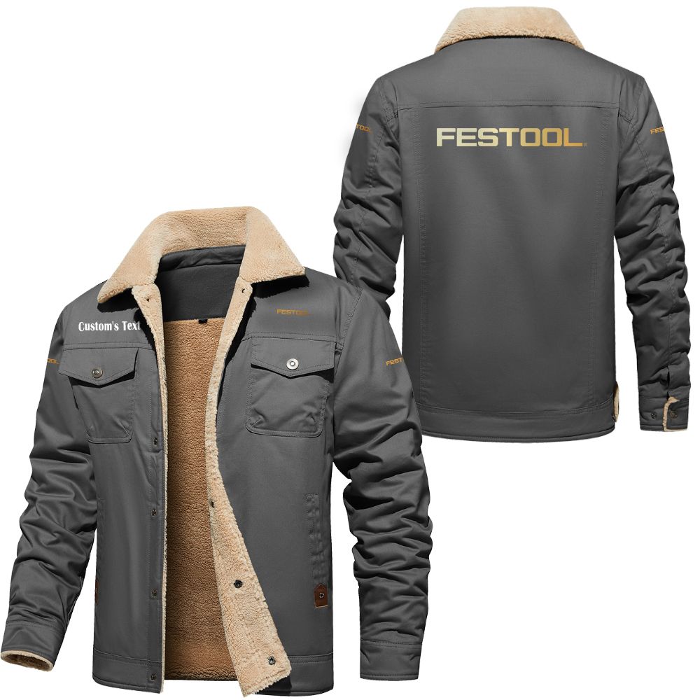 Festool Logo Custom Text Cargo Fleece Lined Cotton Jacket