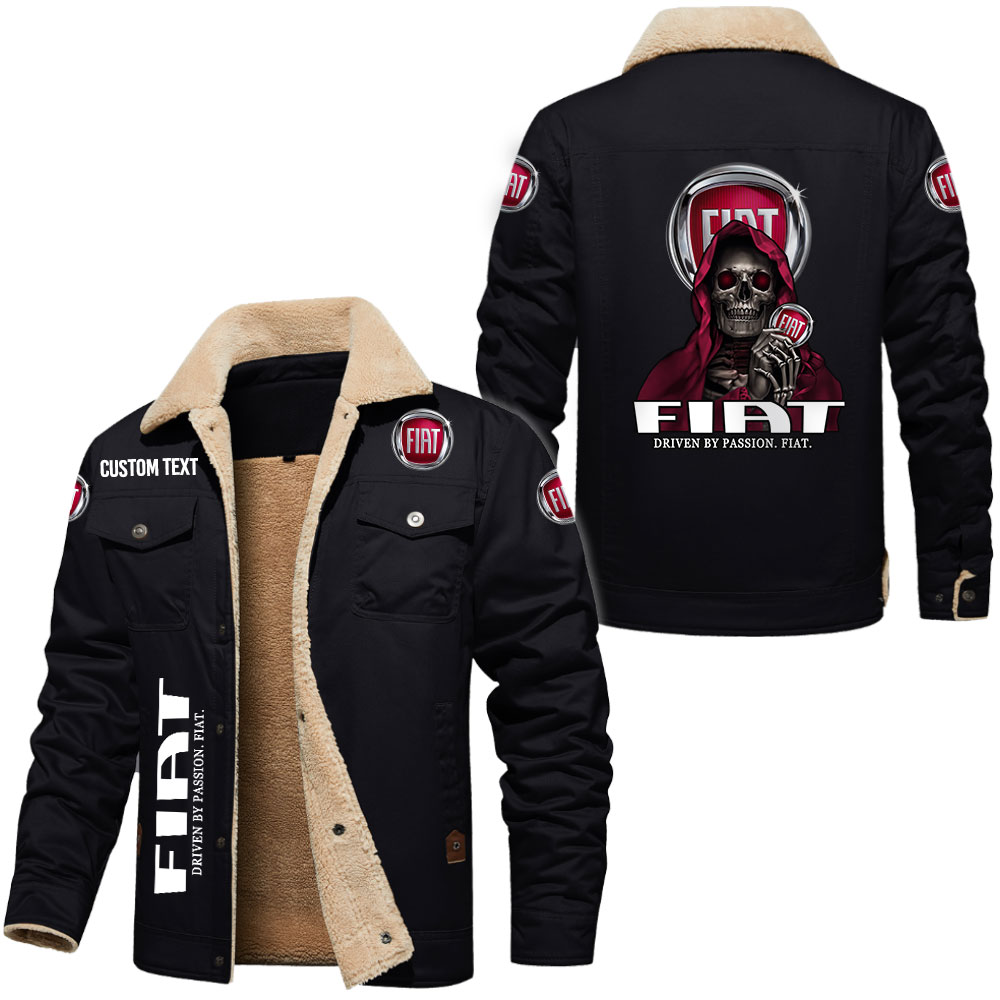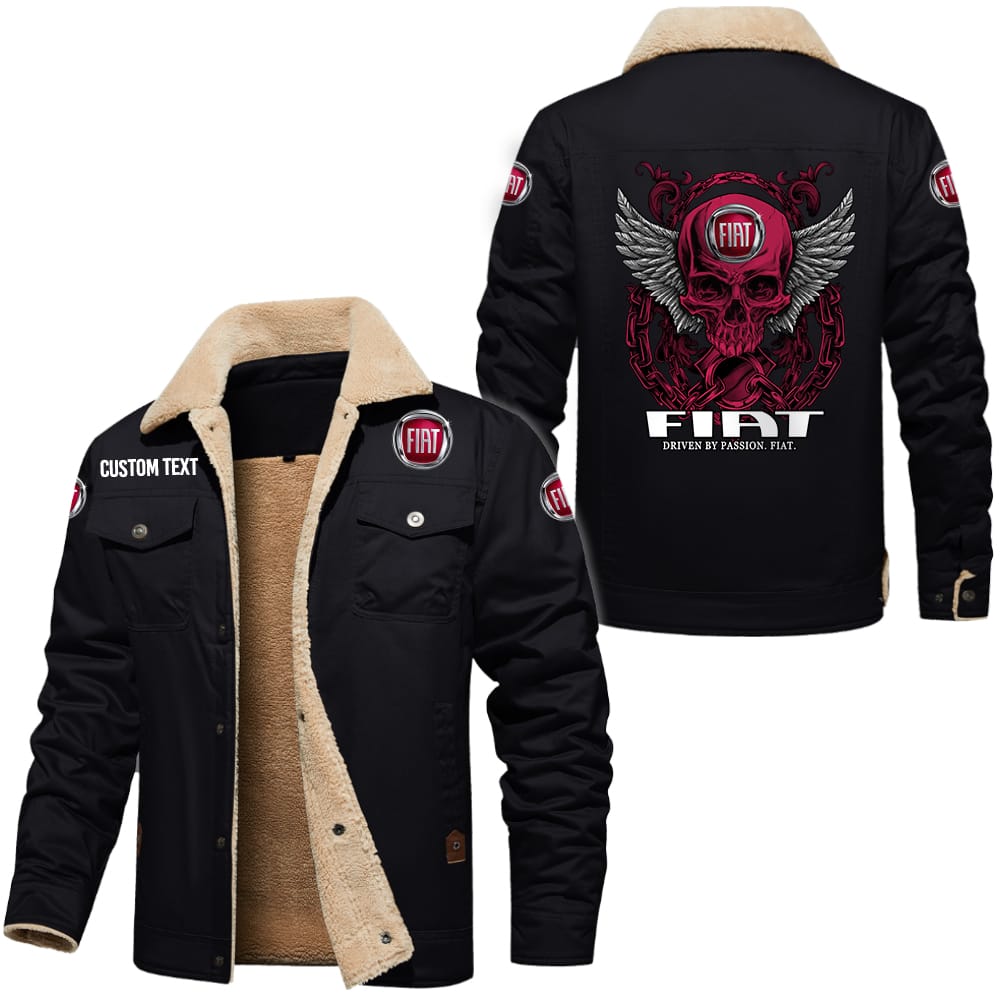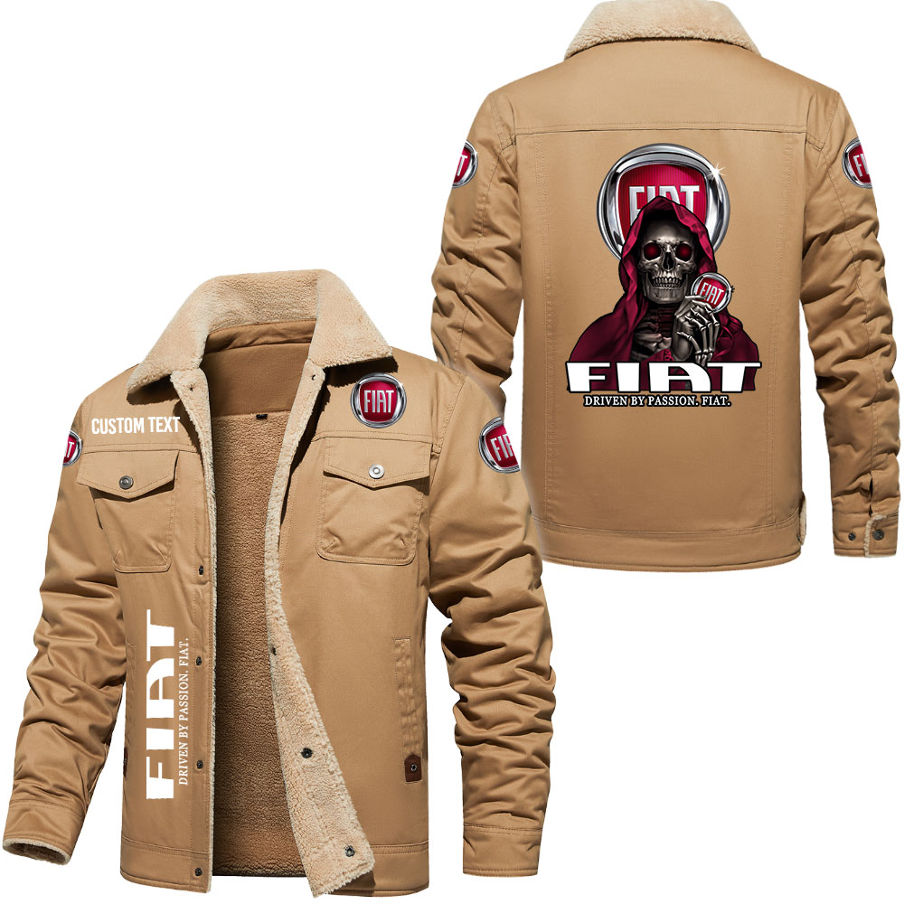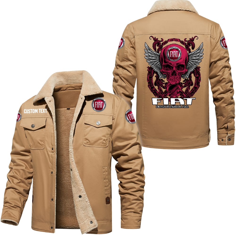 Fiat Driven By Passion Custom Name Skull Design Cargo Fleece Lined Cotton Jacket