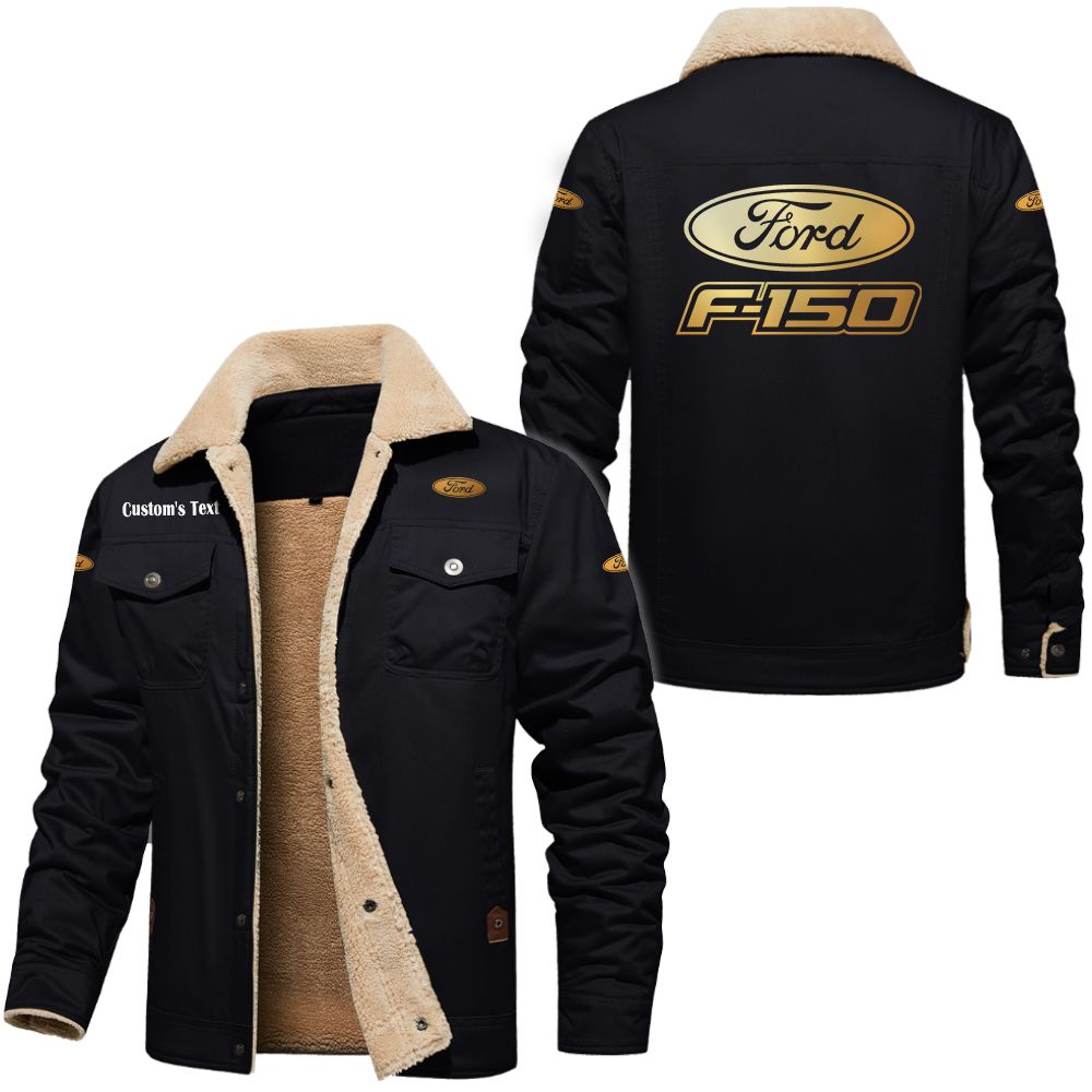 Ford f150 Golden Logo Custom Cargo Fleece Lined Cotton Jacket Black