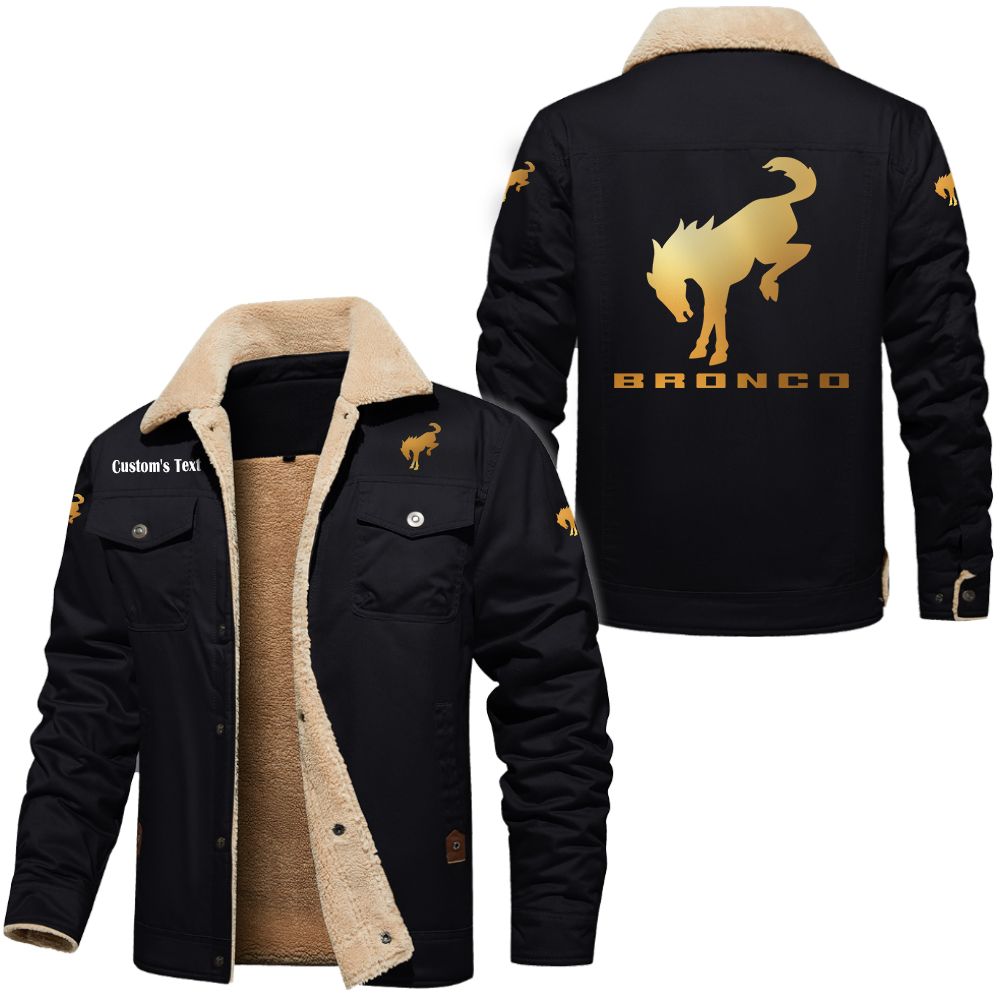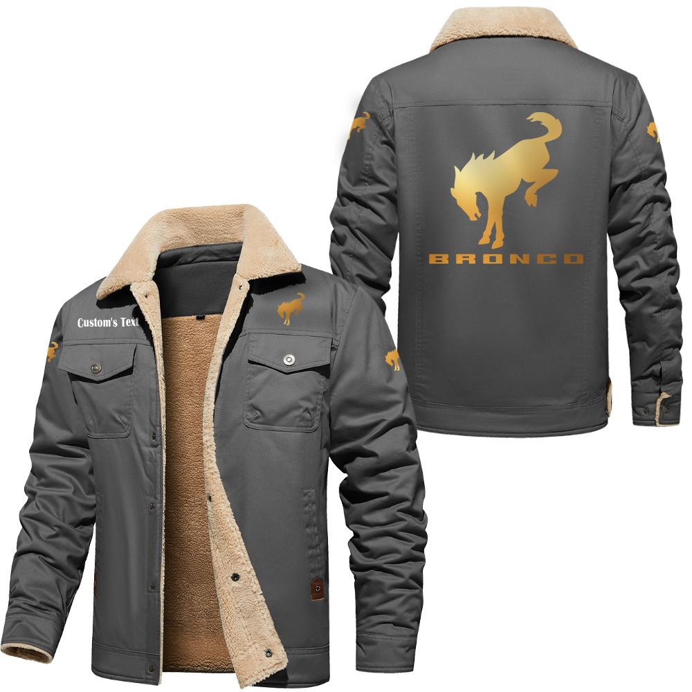 Ford Bronco Logo Custom Text Cargo Fleece Lined Cotton Jacket