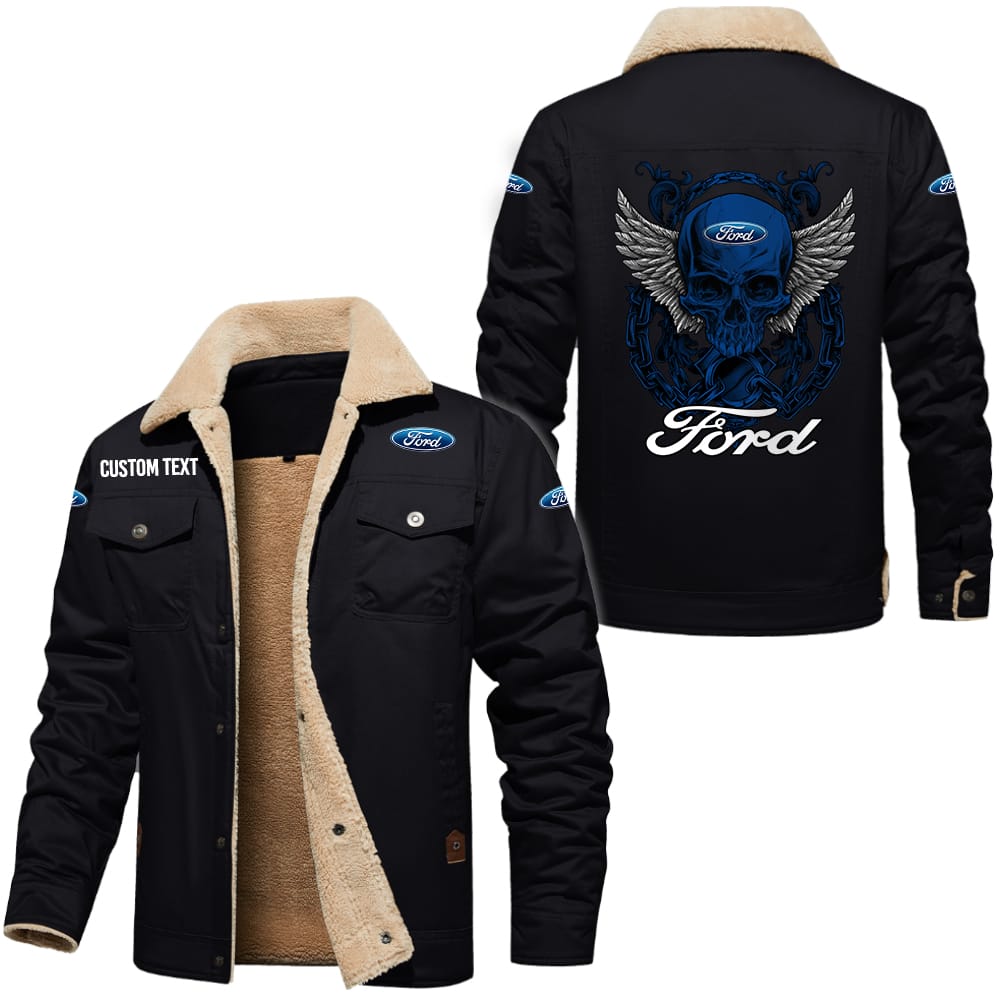 Ford Custom Name Skull Design Cargo Fleece Lined Cotton Jacket