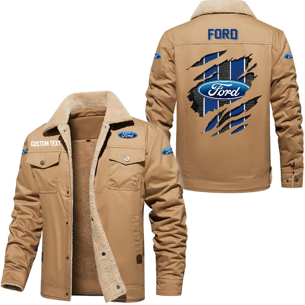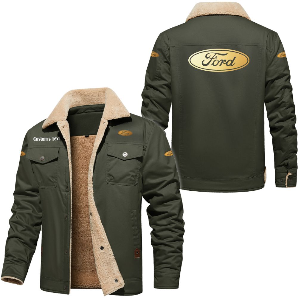 Ford Logo Custom Name Cargo Fleece Lined Cotton Jacket