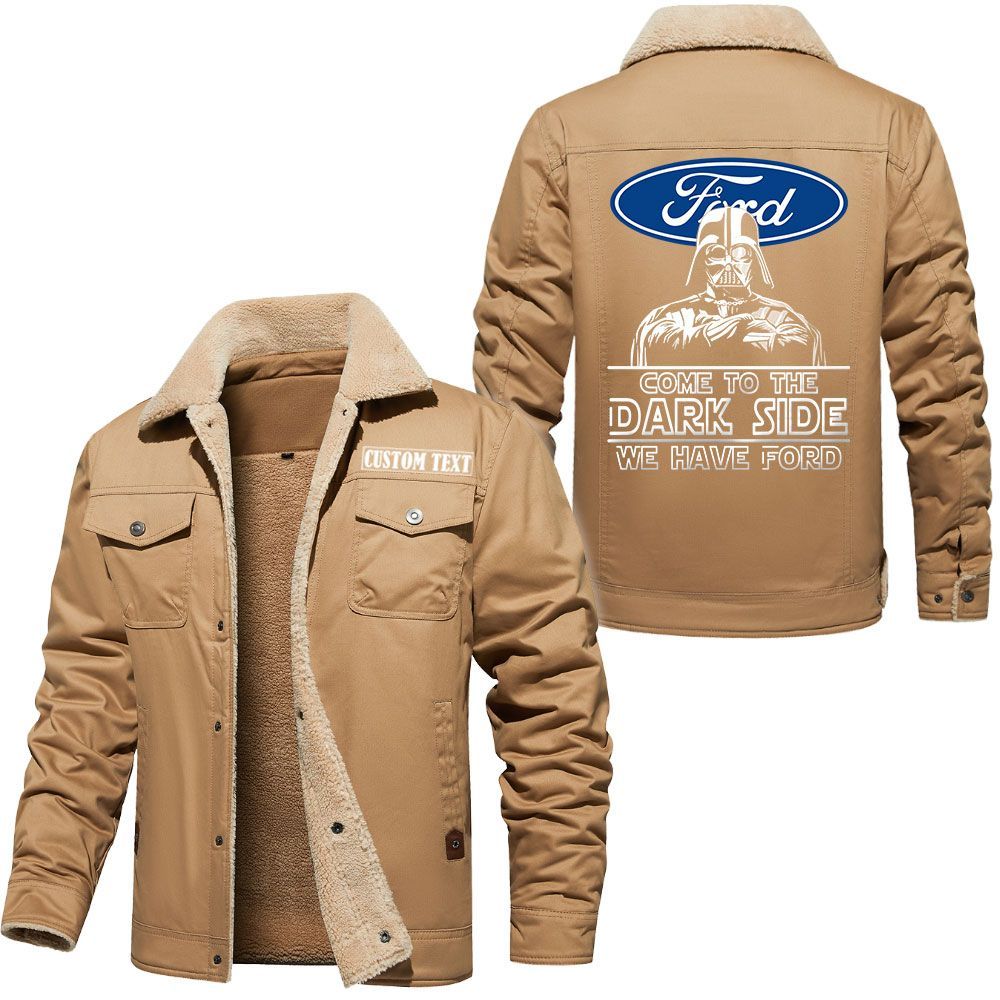 Ford Logo Custom Name Cargo Fleece Lined Cotton Jacket Personalized Outerwear with Dark Side Star Wars Design
