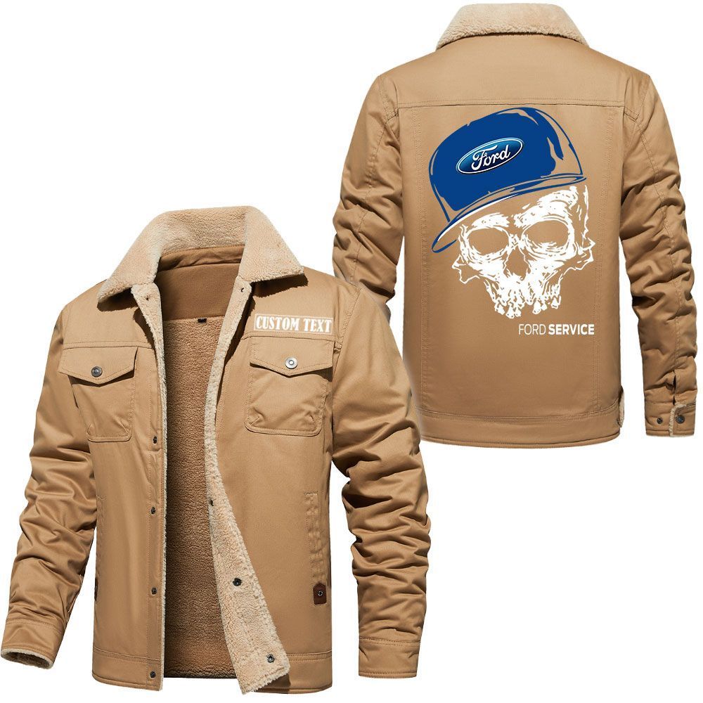 Ford Logo Custom Name Cargo Fleece Lined Cotton Jacket Personalized Outerwear with Skull Design