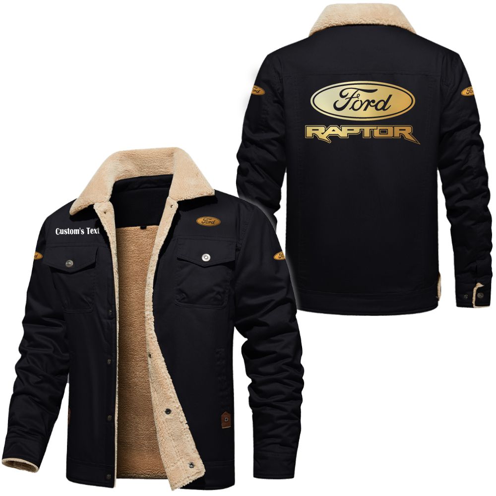 ford raptor Golden Logo Custom Cargo Fleece Lined Cotton Jacket Black