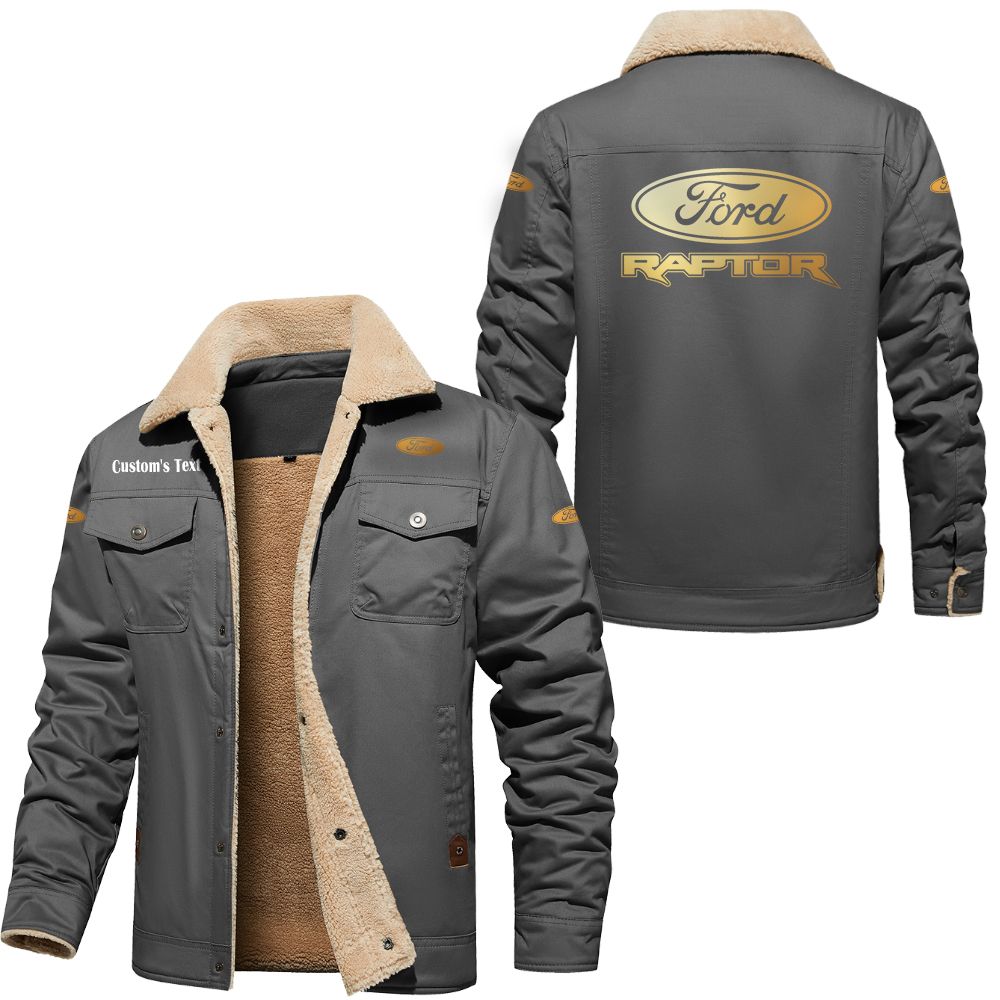ford raptor Golden Logo Custom Cargo Fleece Lined Cotton Jacket Dark Grey