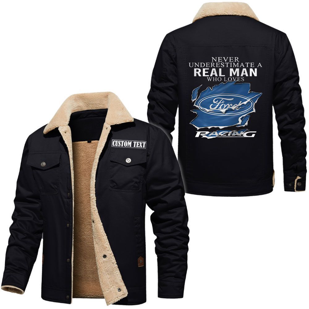 Ford Racing Logo Custom Name Cargo Fleece Lined Cotton Jacket A Real Man Who Loves Personalized Outerwear