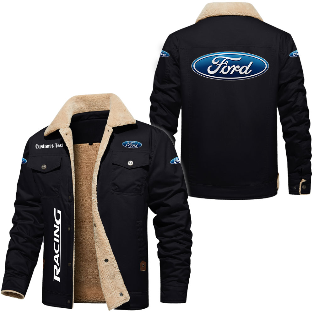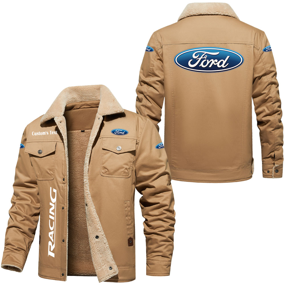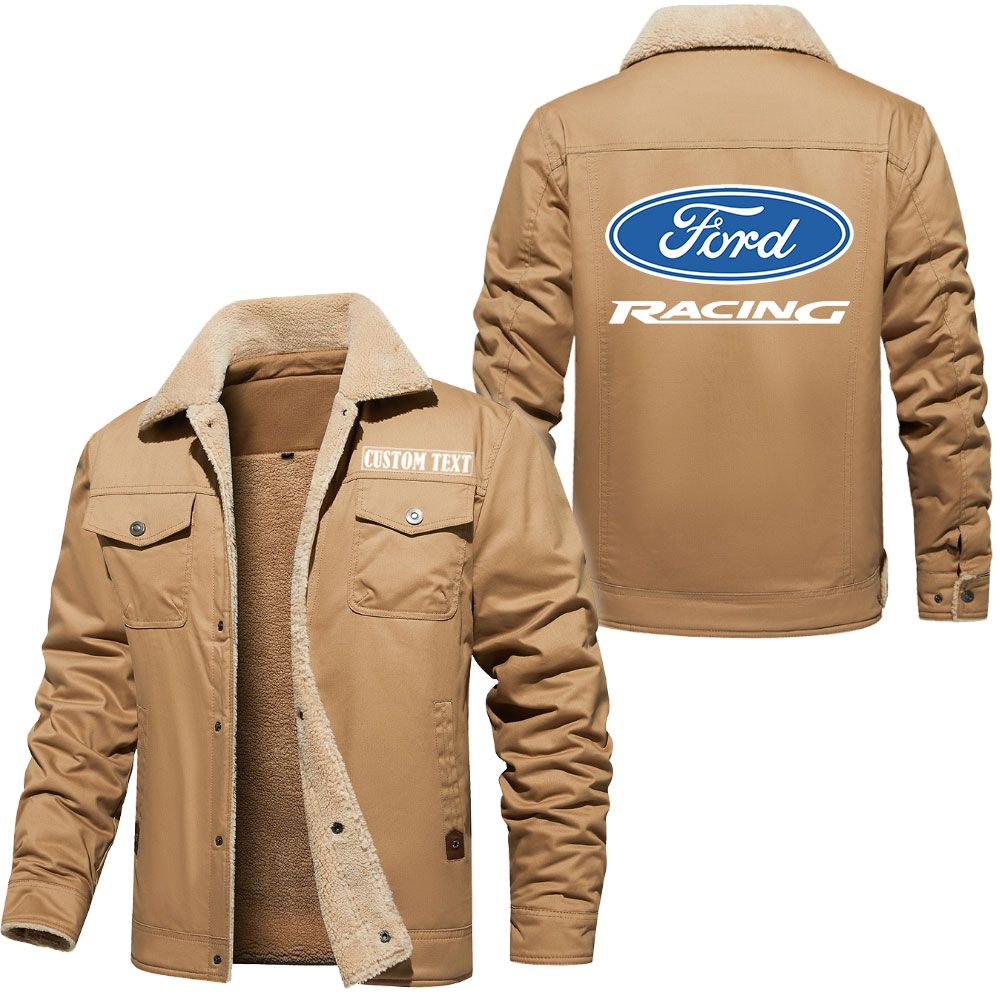 Ford Racing Logo Custom Name Cargo Fleece Lined Cotton Jacket Stylish Warm Personalized Outerwear