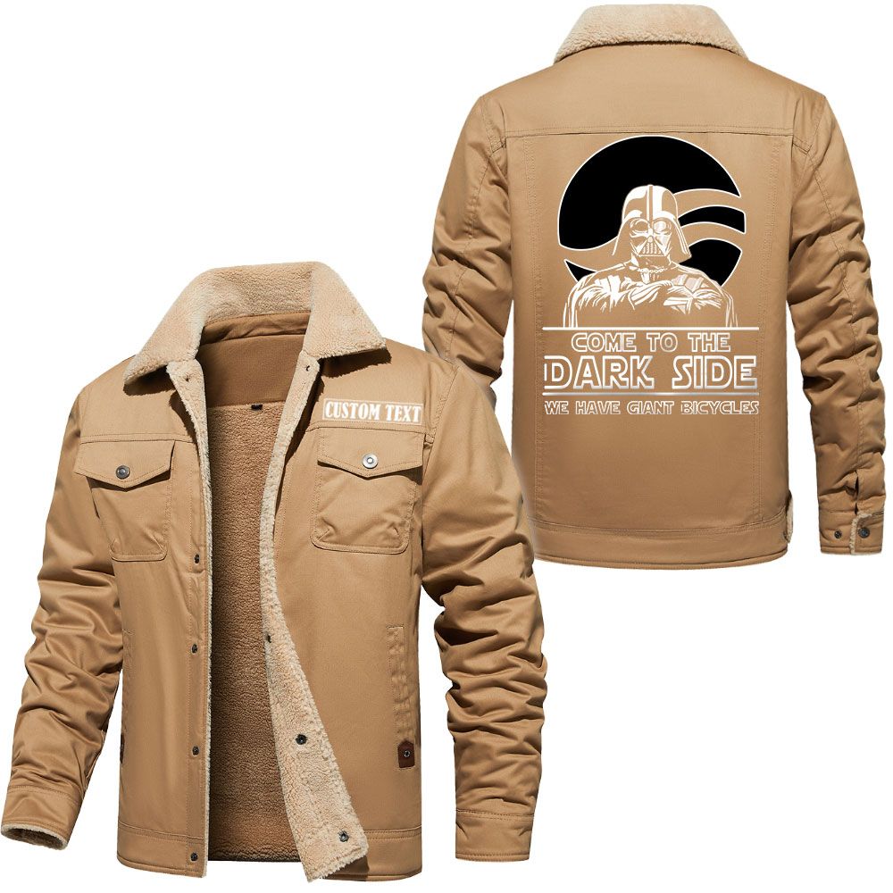 Giant Bicycles Logo Custom Name Cargo Fleece Lined Cotton Jacket Personalized Outerwear with Dark Side Star Wars Design