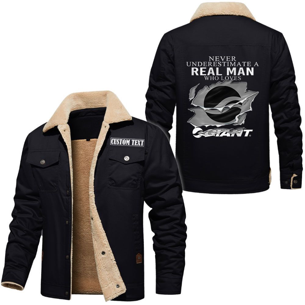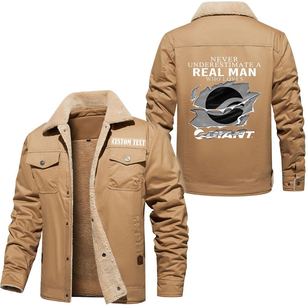 Giant Bicycles Logo Custom Name Cargo Fleece Lined Cotton Jacket A Real Man Who Loves Personalized Outerwear