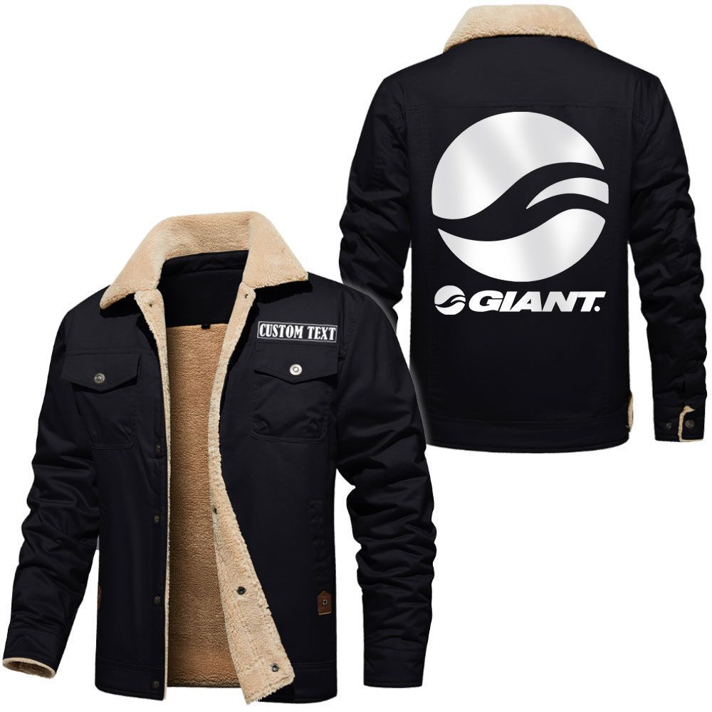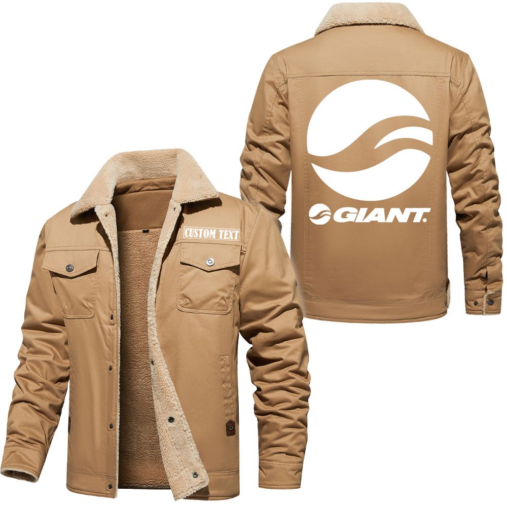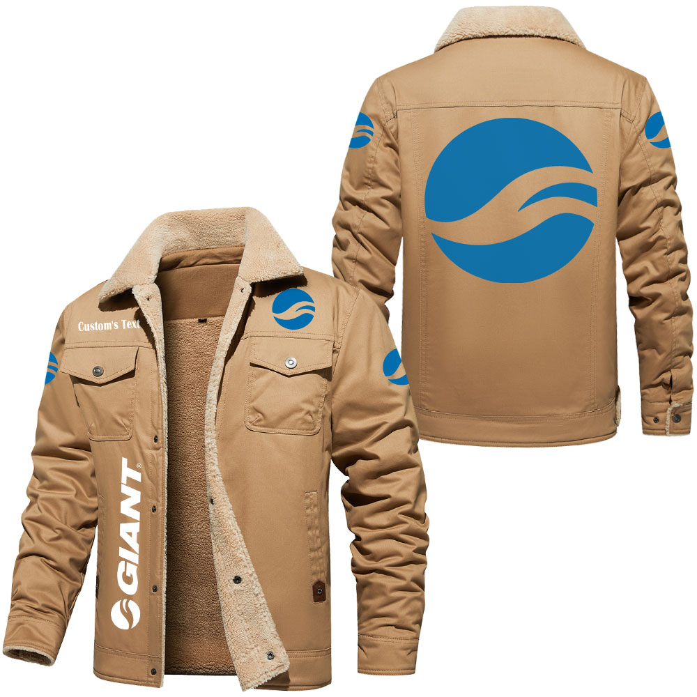 Giant Bicycles Logo Custom Name Cargo Fleece Lined Cotton Jacket Stylish Warm Personalized Outerwear
