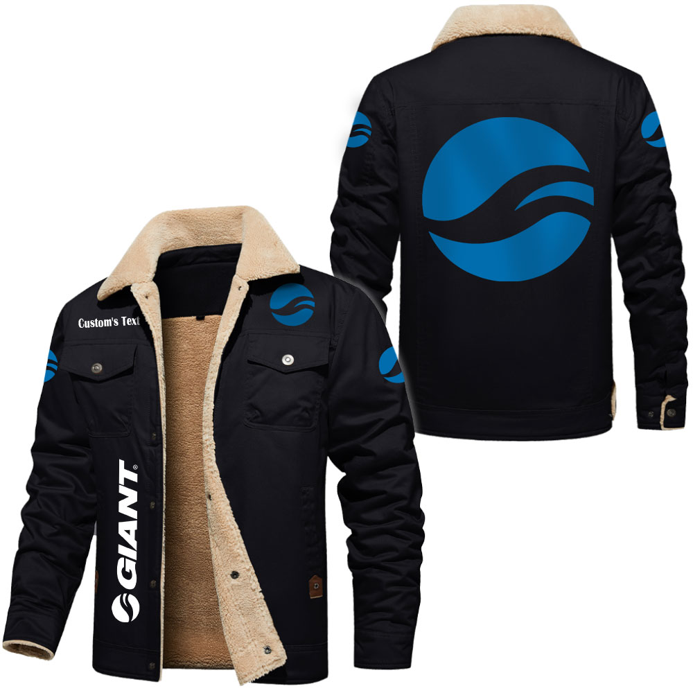 Giant Bicycles Logo Custom Text Cargo Fleece Lined Cotton Jacket