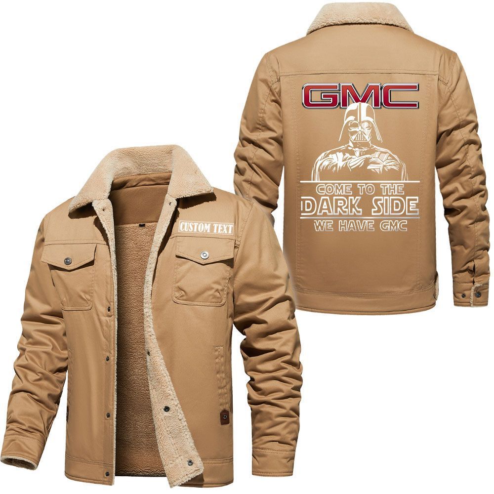 GMC Logo Custom Name Cargo Fleece Lined Cotton Jacket Personalized Outerwear with Dark Side Star Wars Design