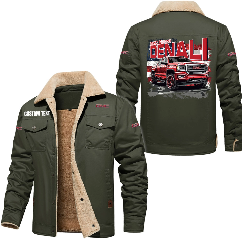 GMC Sierra Denali Custom Cargo Fleece Lined Cotton Jacket Army Green