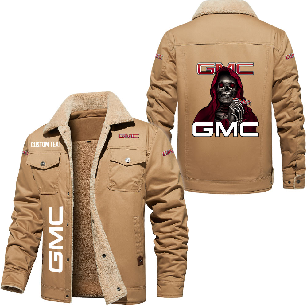 GMC Skull Art Print Custom Name Cargo Fleece Lined Cotton Jacket