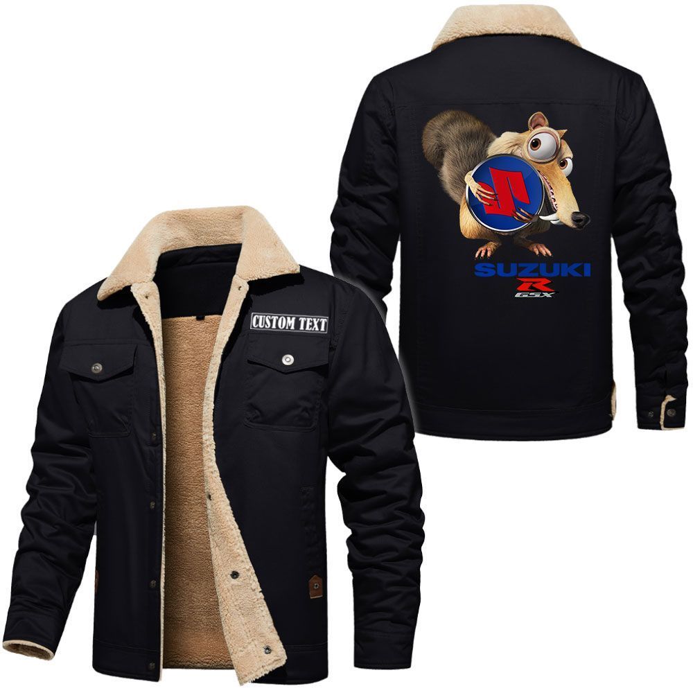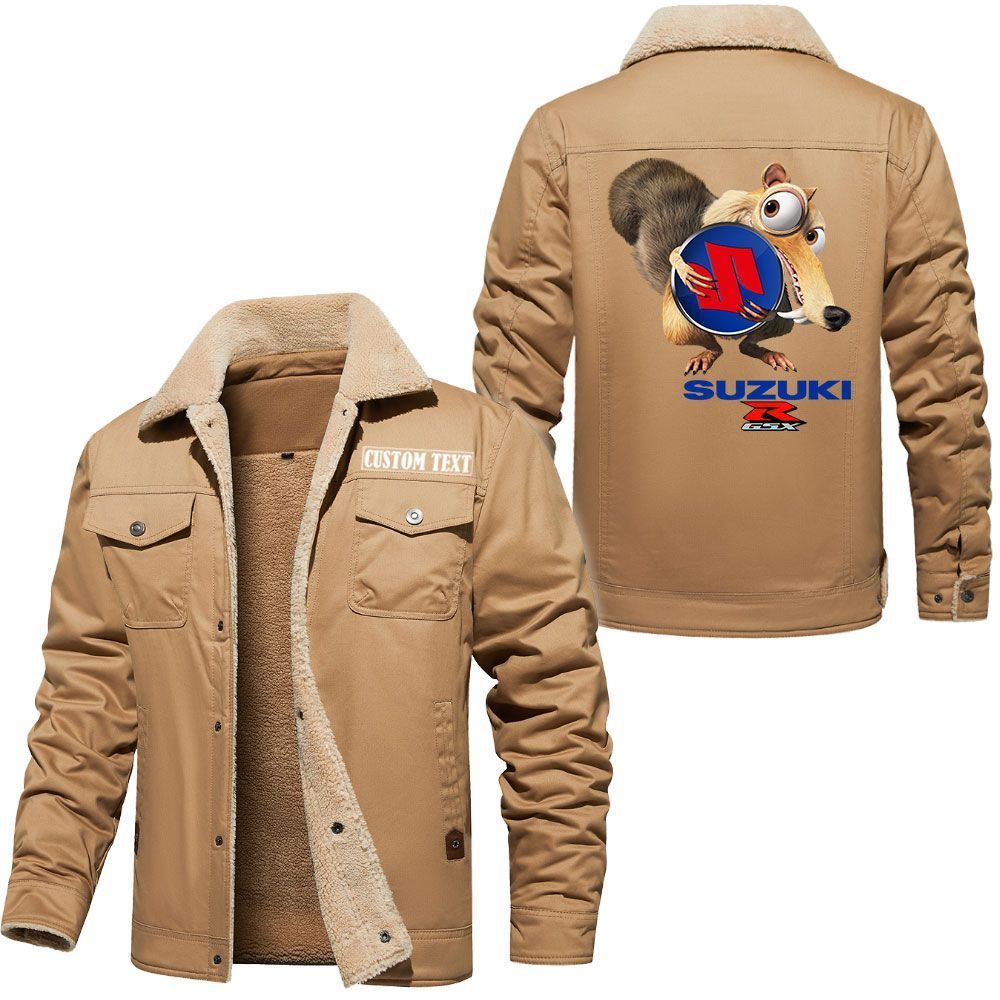 Gsx Logo Custom Name Cargo Fleece Lined Cotton Jacket Scrat Ice Age Design Personalized Outerwear