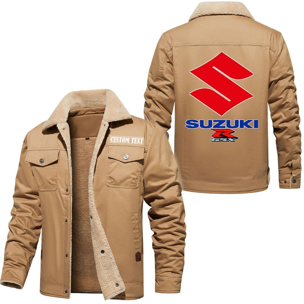 Gsx Logo Custom Name Cargo Fleece Lined Cotton Jacket Stylish Warm Personalized Outerwear
