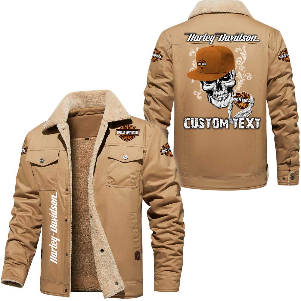 Harley Davidson Logo Skull Design Custom Text Cargo Fleece Lined Cotton Jacket