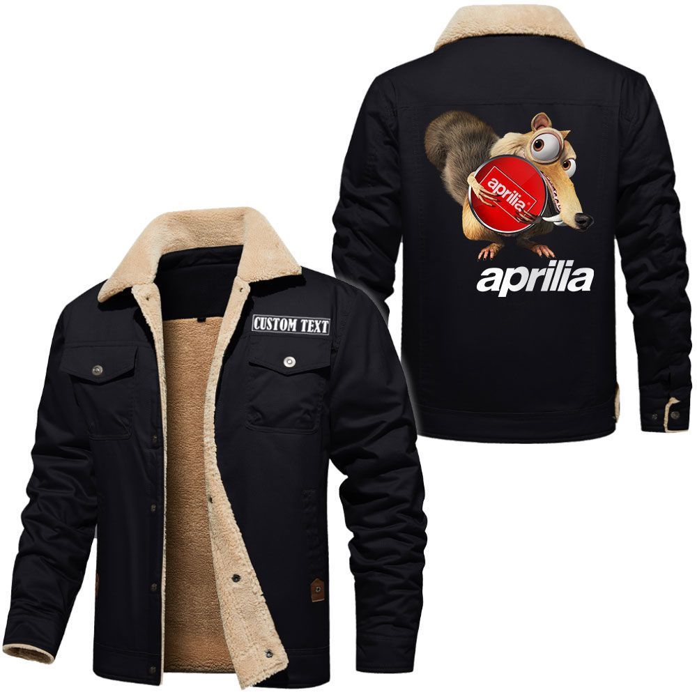 Aprilia Logo Custom Name Cargo Fleece Lined Cotton Jacket Scrat Ice Age Design Personalized Outerwear