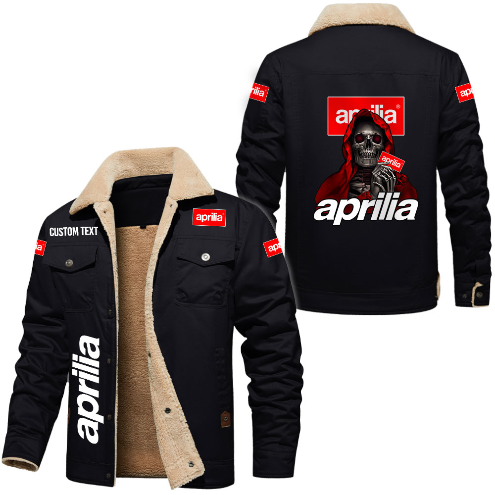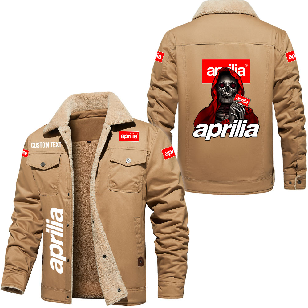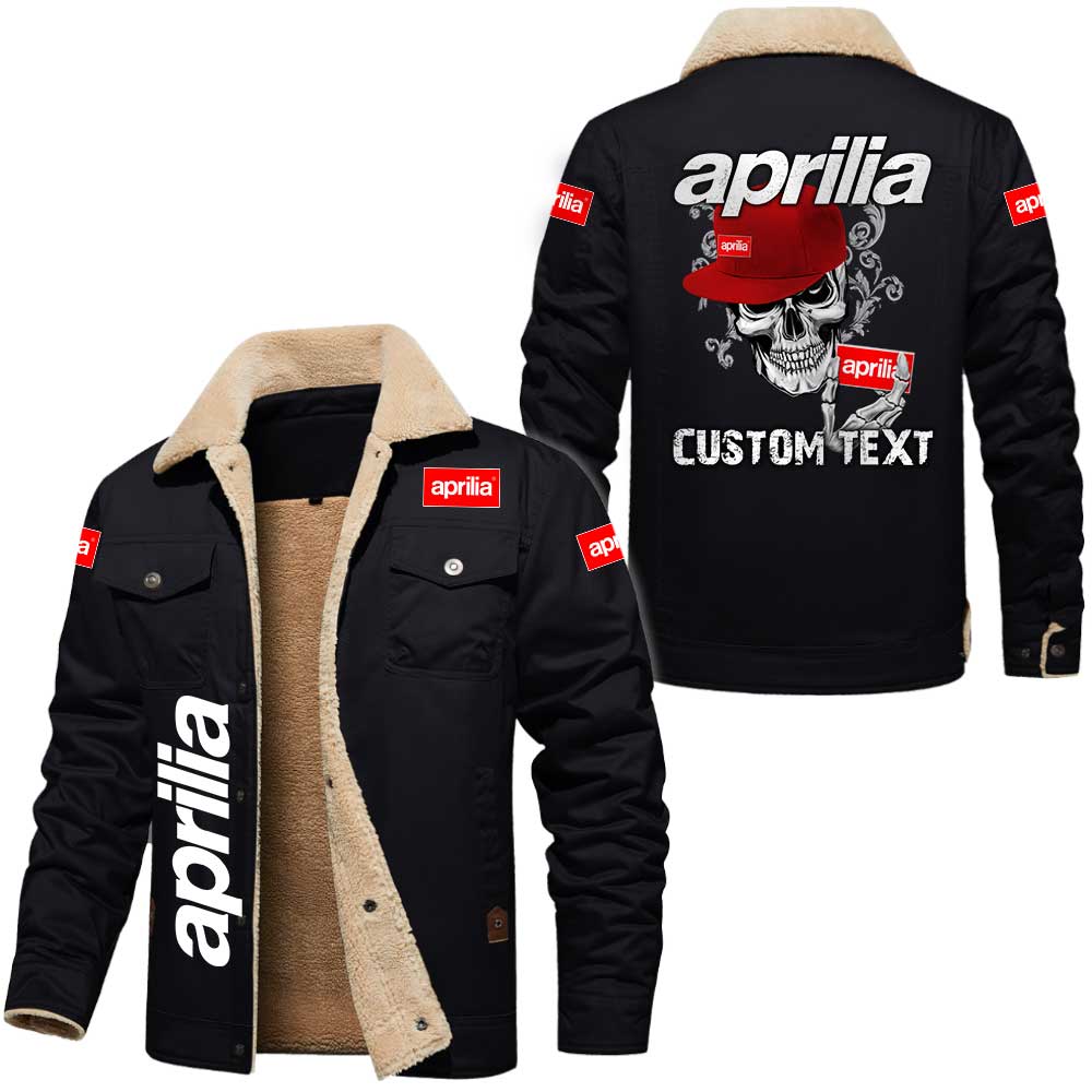 Aprilia Logo Custom Name Cargo Fleece Lined Cotton Jacket Personalized Outerwear with Skull Design