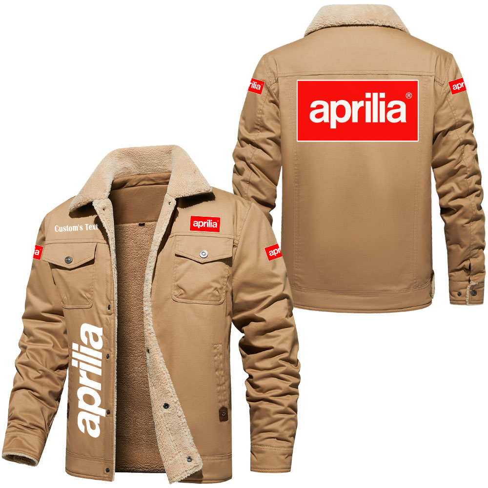 Aprilia Logo Custom Name Cargo Fleece Lined Cotton Jacket Stylish Warm Personalized Outerwear