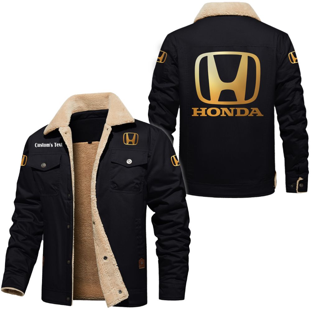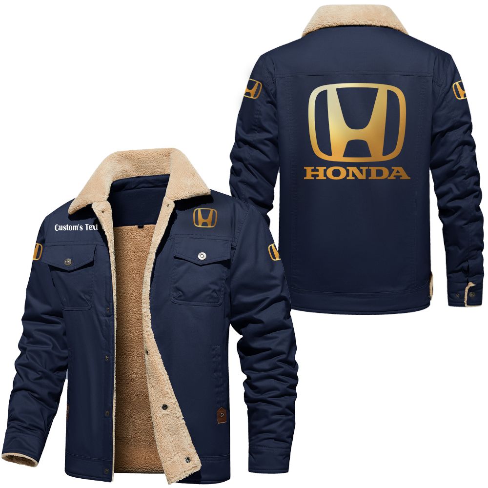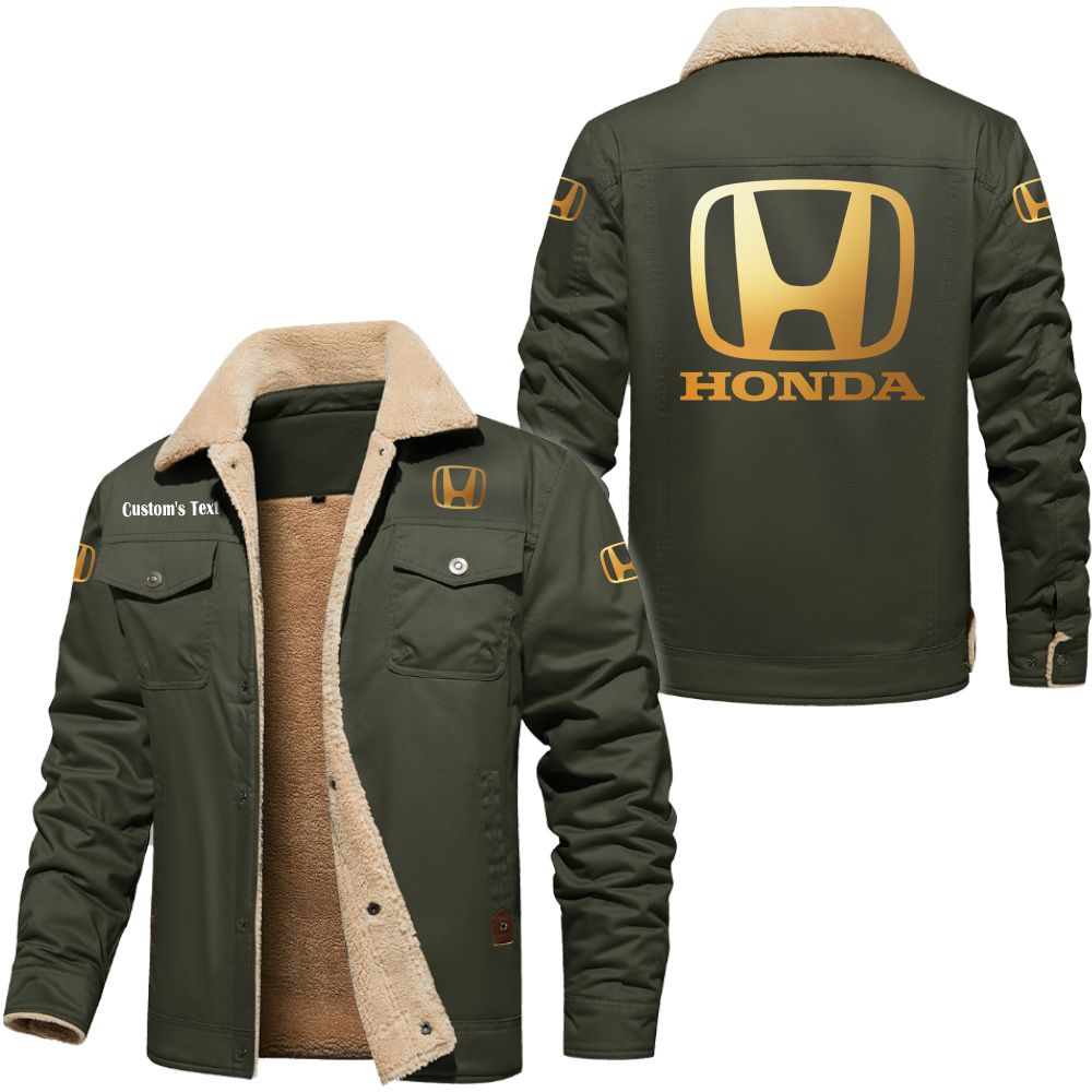 Honda Logo Custom Name Cargo Fleece Lined Cotton Jacket