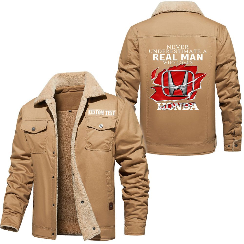 Honda Logo Custom Name Cargo Fleece Lined Cotton Jacket A Real Man Who Loves Personalized Outerwear