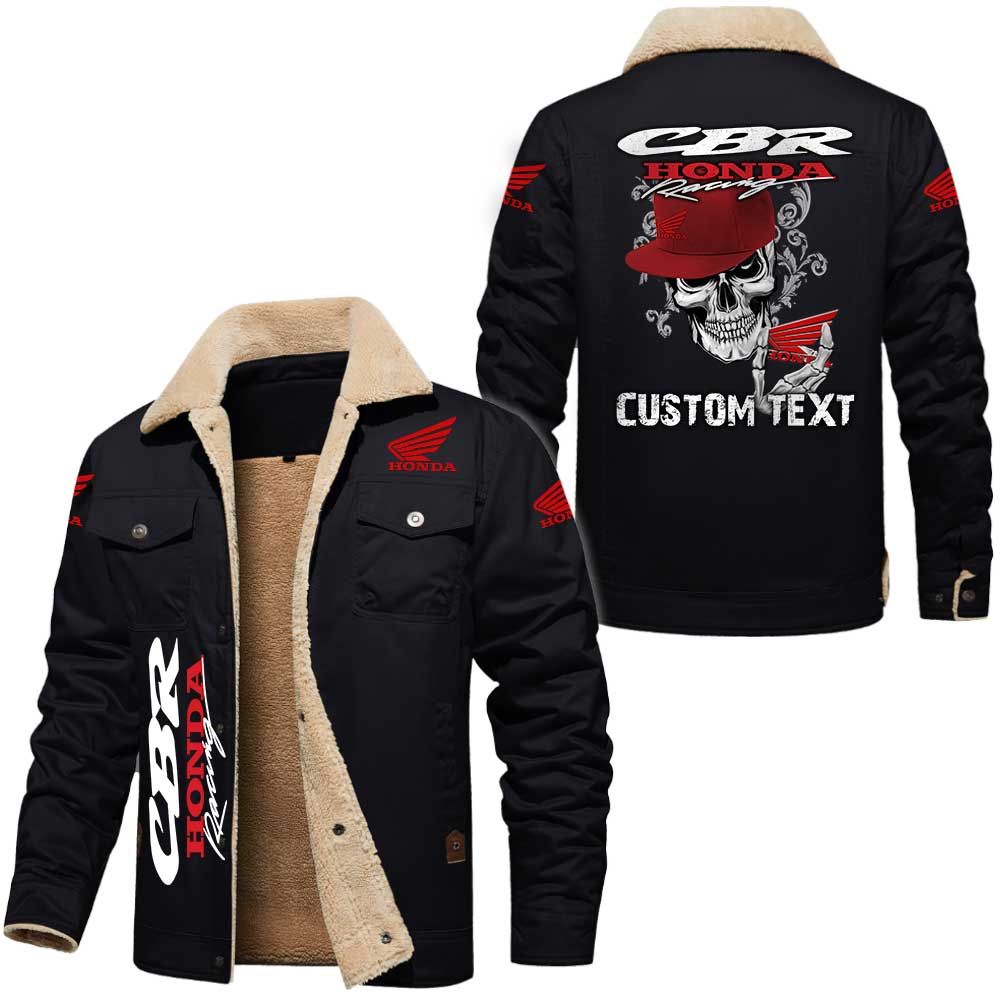 Honda CBR Skull Custom Name Cargo Fleece Lined Cotton Jacket