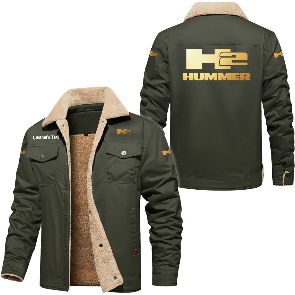 Hummer H2 Golden Logo Custom Cargo Fleece Lined Cotton Jacket Army Green