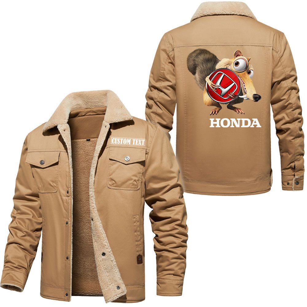 Honda Logo Custom Name Cargo Fleece Lined Cotton Jacket Scrat Ice Age Design Personalized Outerwear