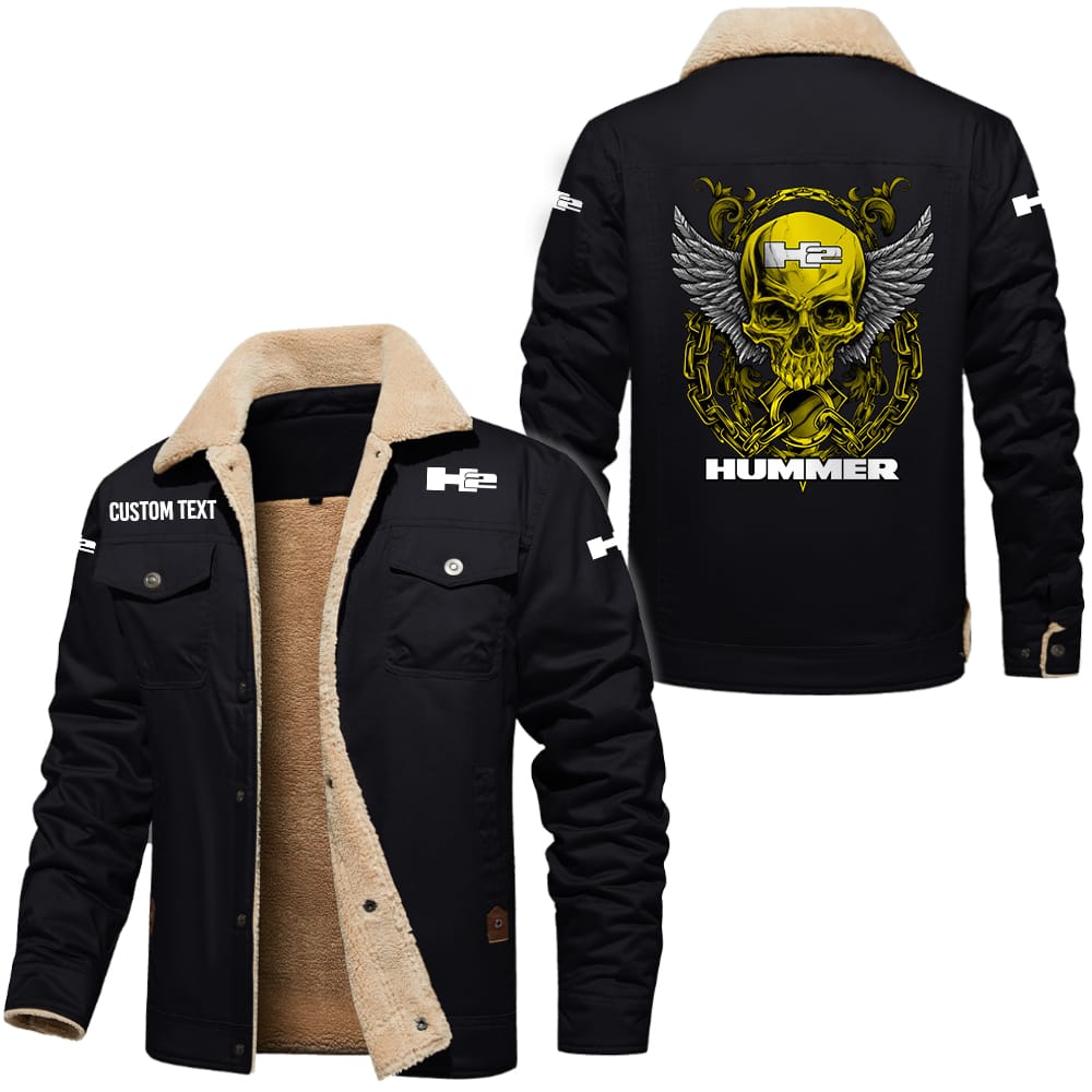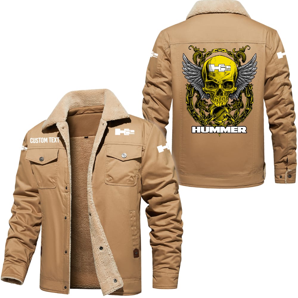 Hummer H2 Custom Name Skull Design Cargo Fleece Lined Cotton Jacket