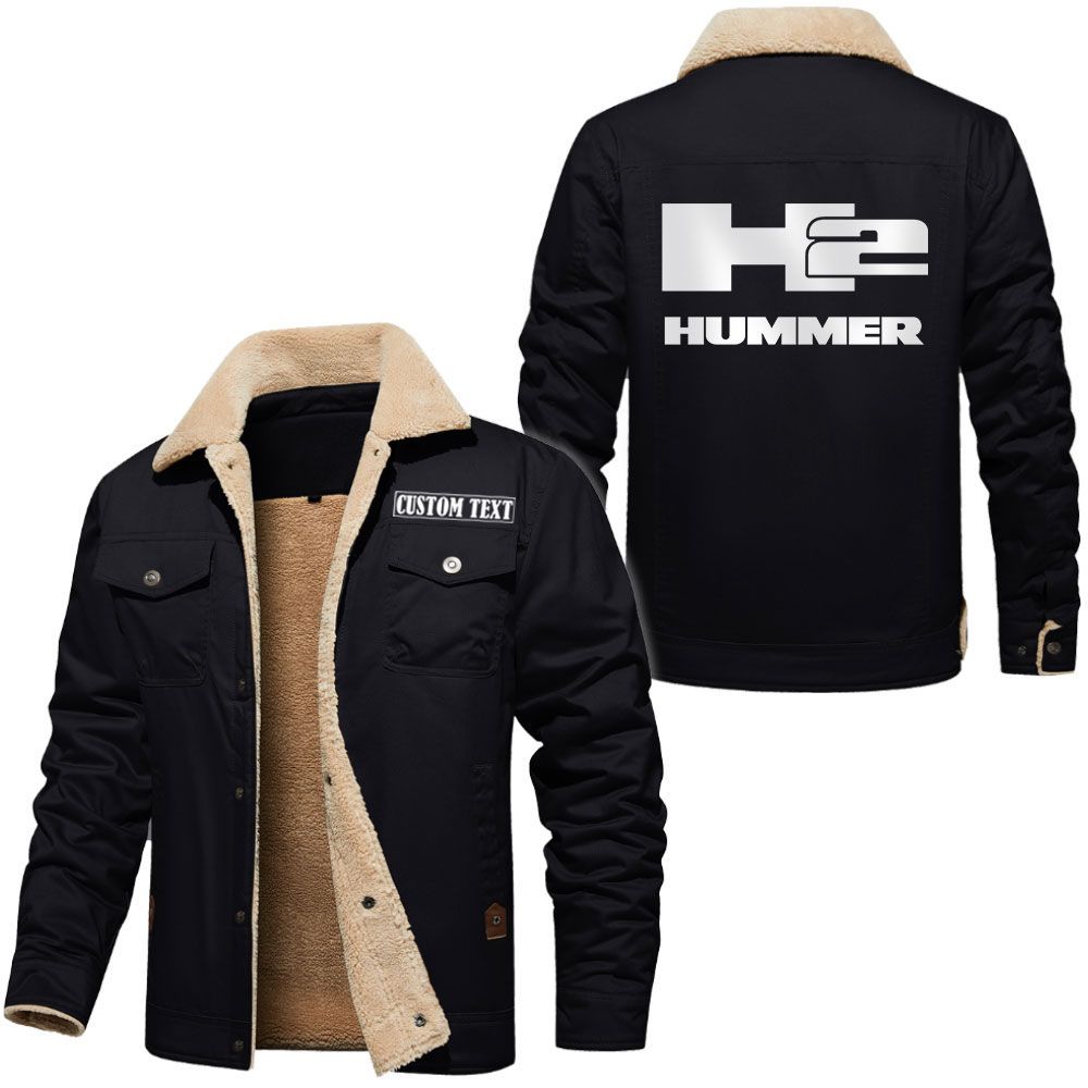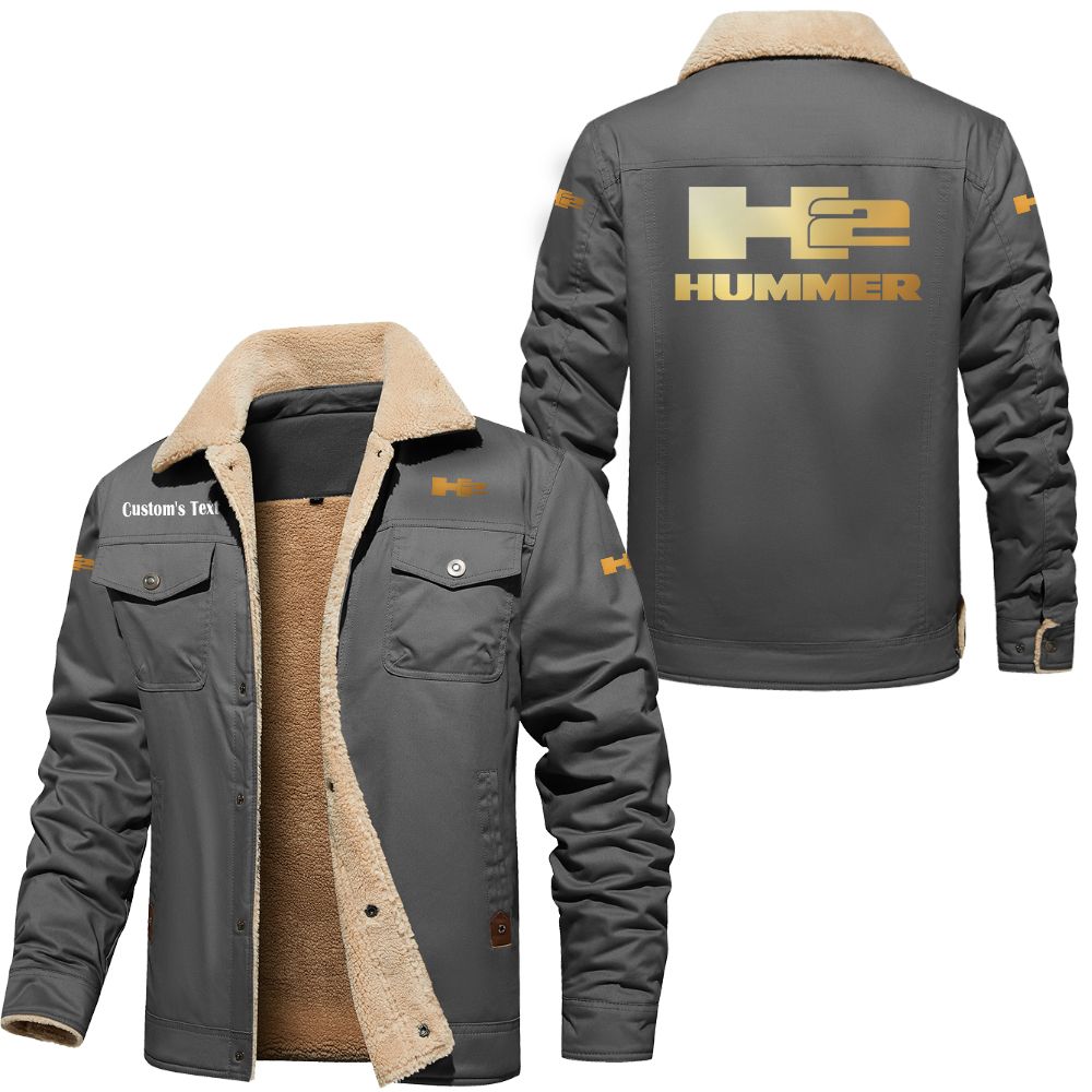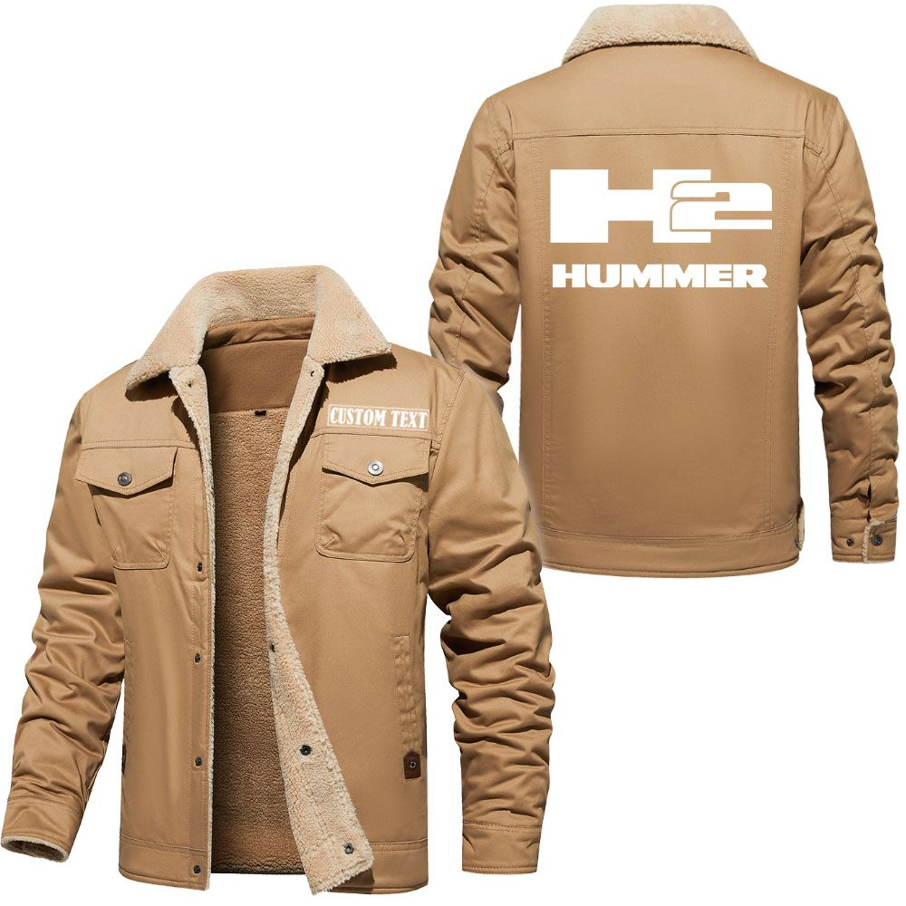 Hummer H2 Logo Custom Name Cargo Fleece Lined Cotton Jacket Stylish Warm Personalized Outerwear